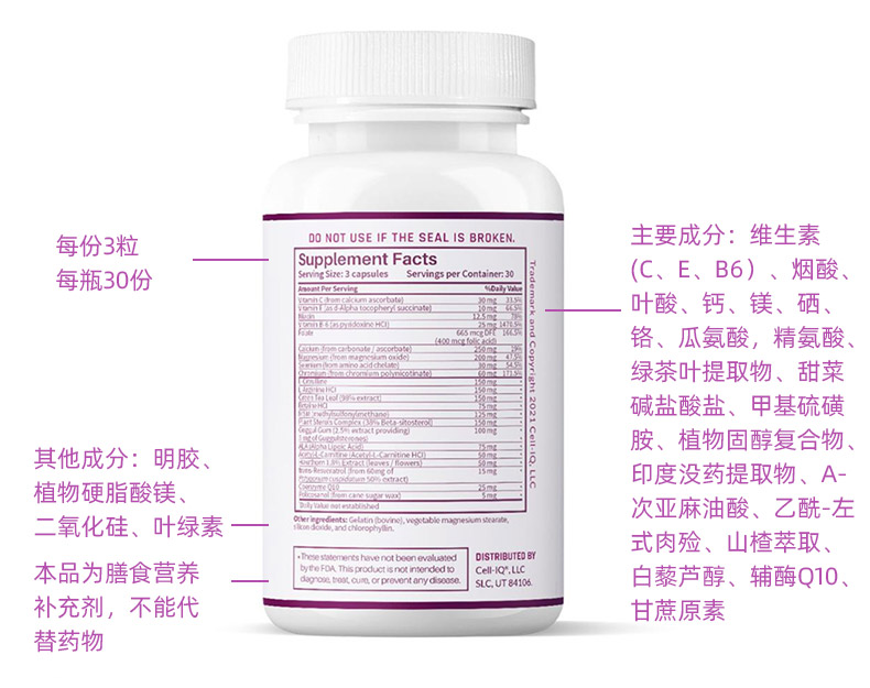 美国Cell-IQ汉拿博士心健胶囊Heart Health(90粒)