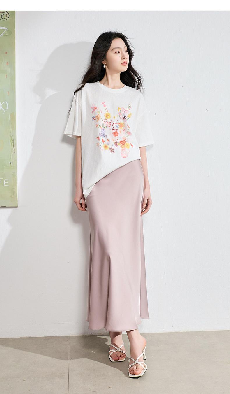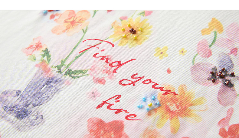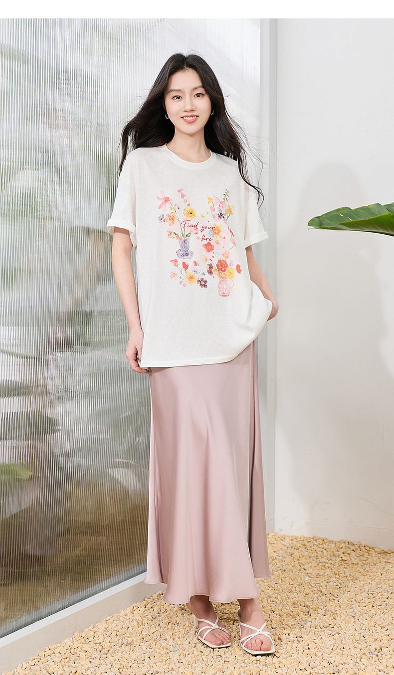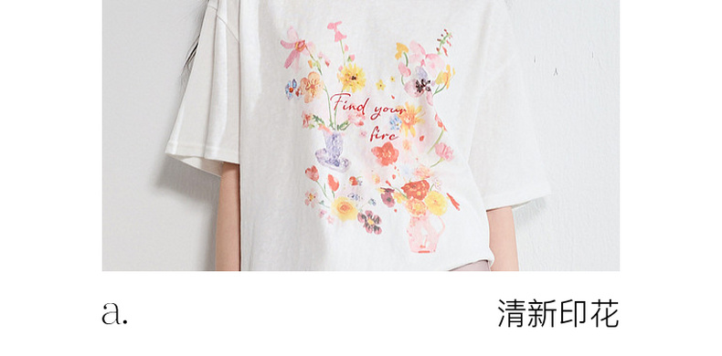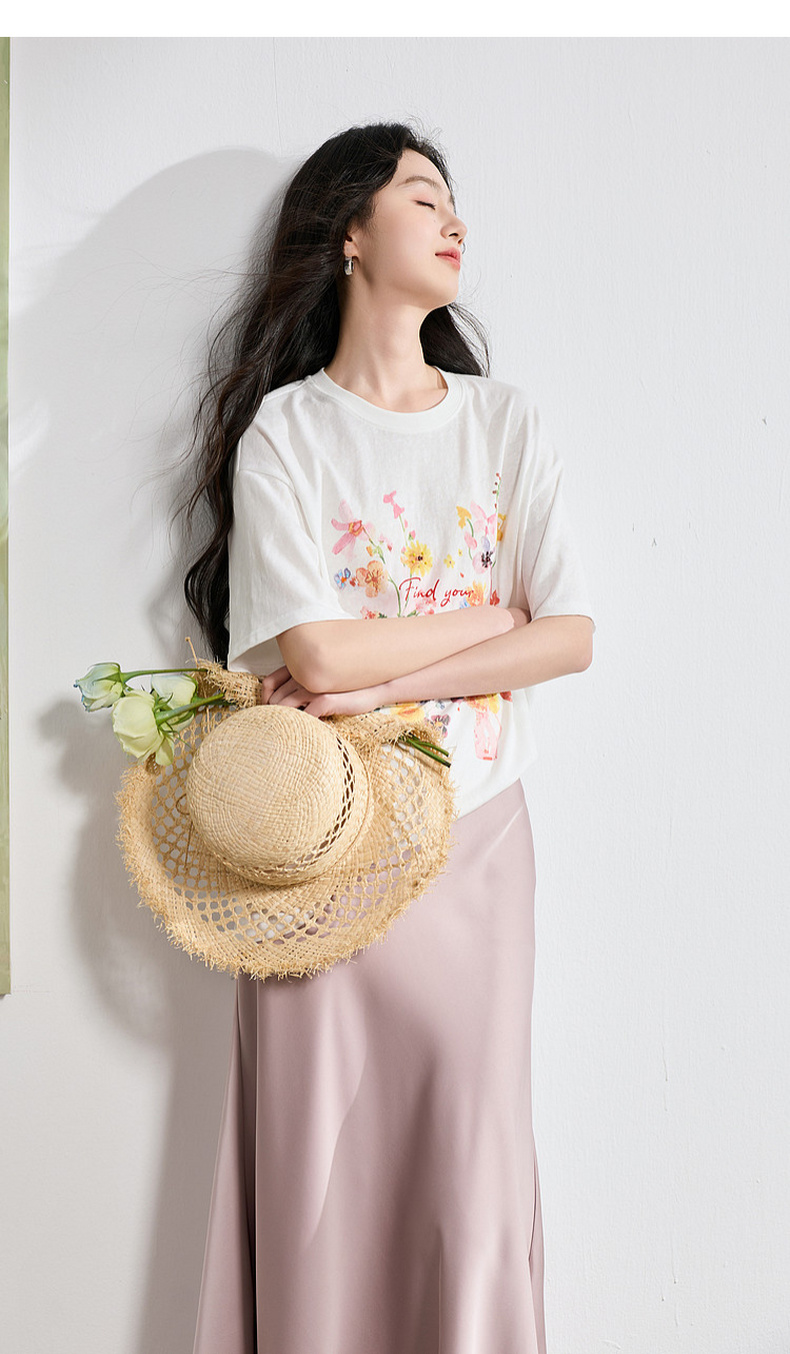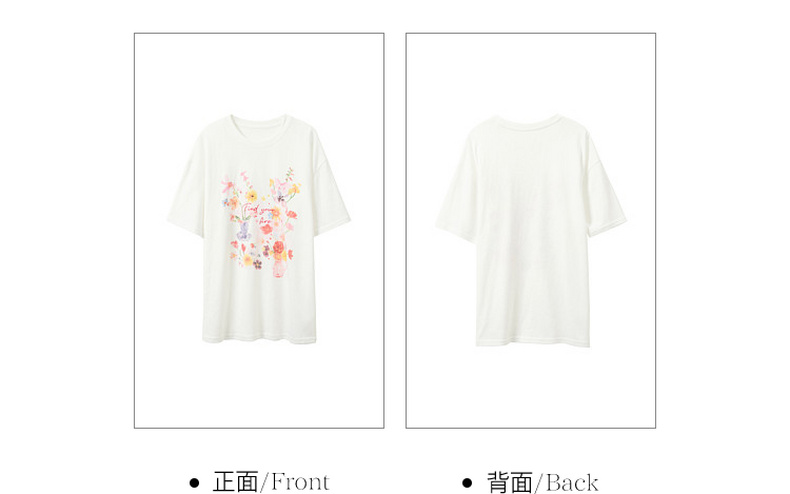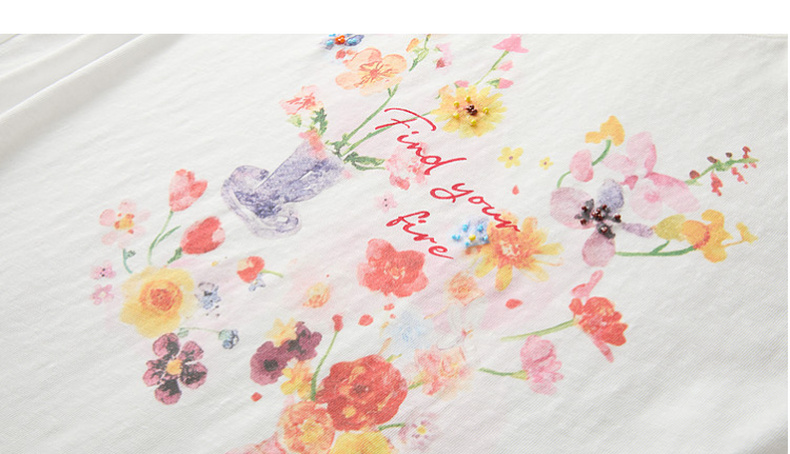 三彩2026夏季新款圆领印花T恤落肩袖宽松上衣套头休闲S