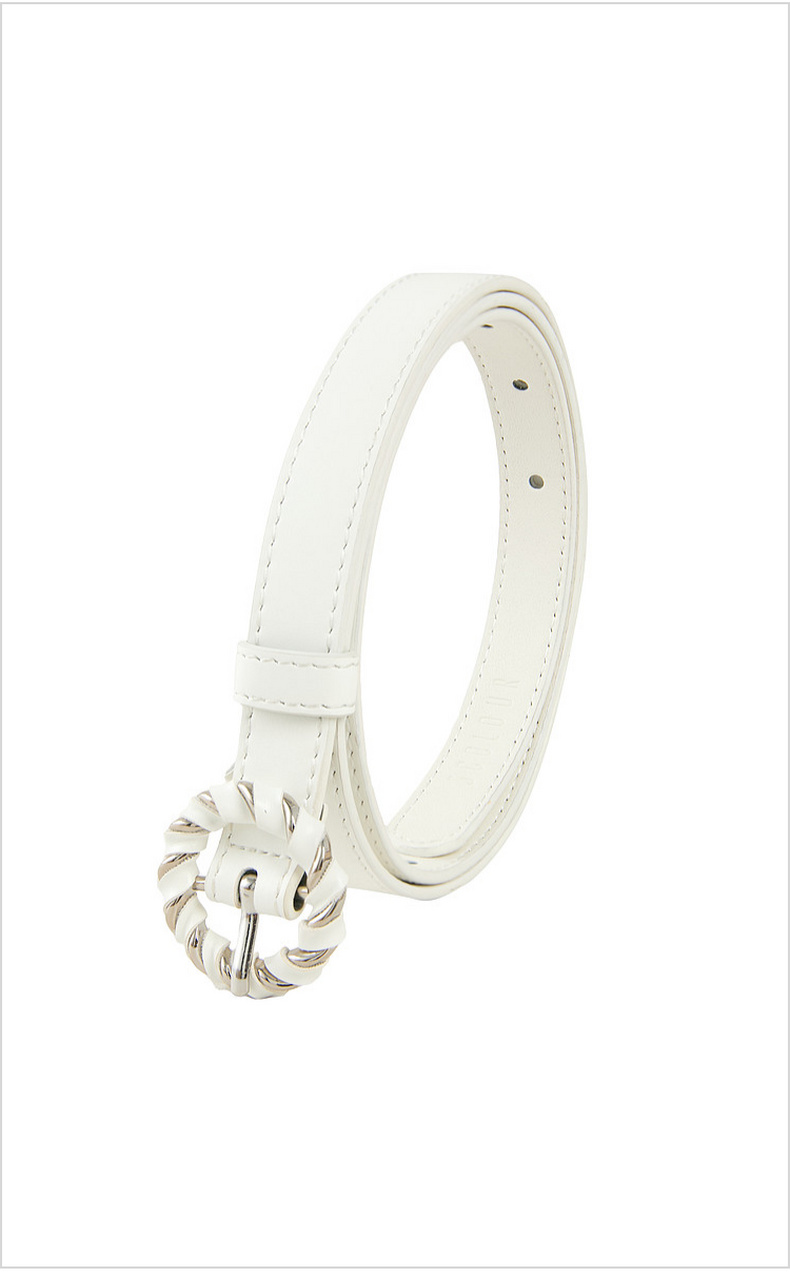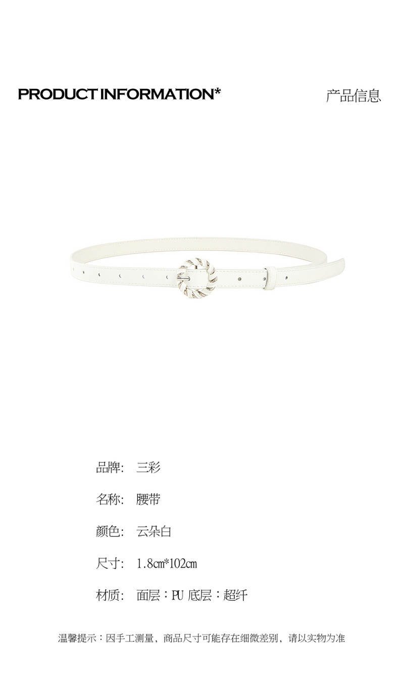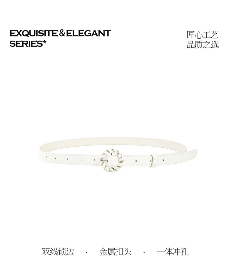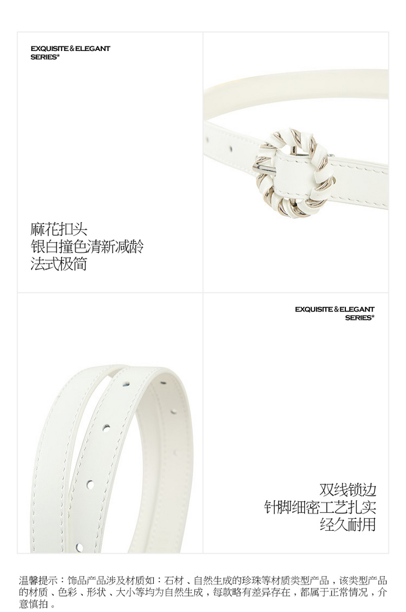 三彩2026新款白色皮质腰带圆形麻花窄版束腰配裤装法式温柔清新女