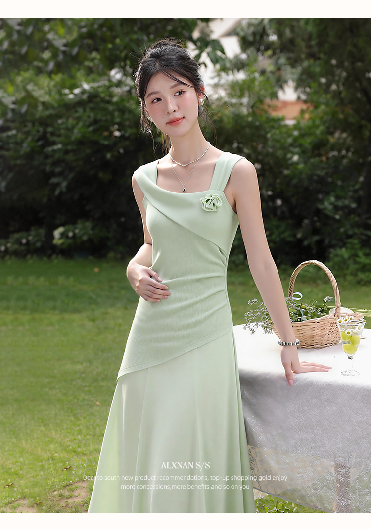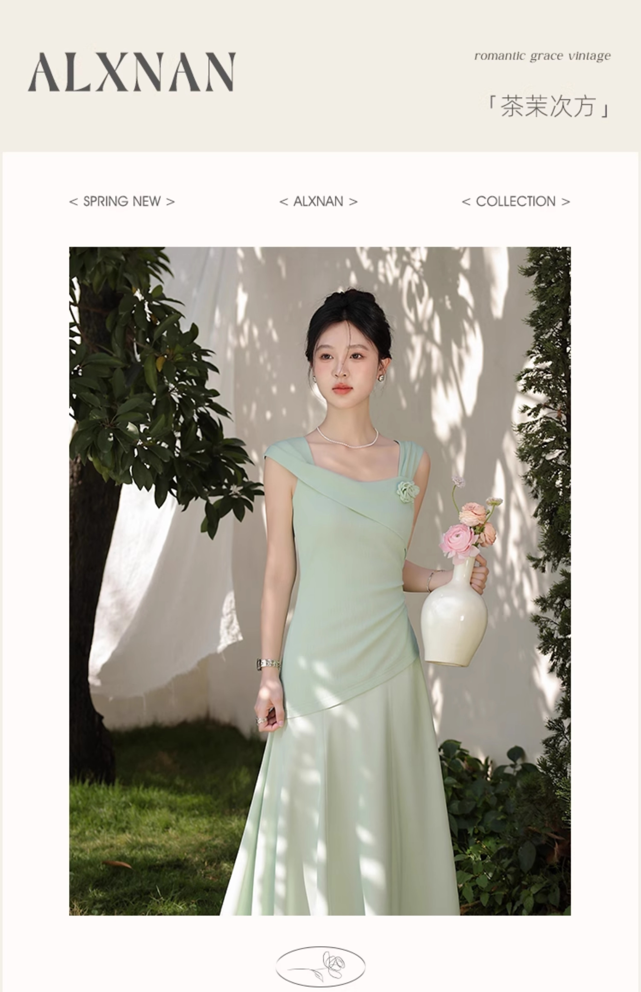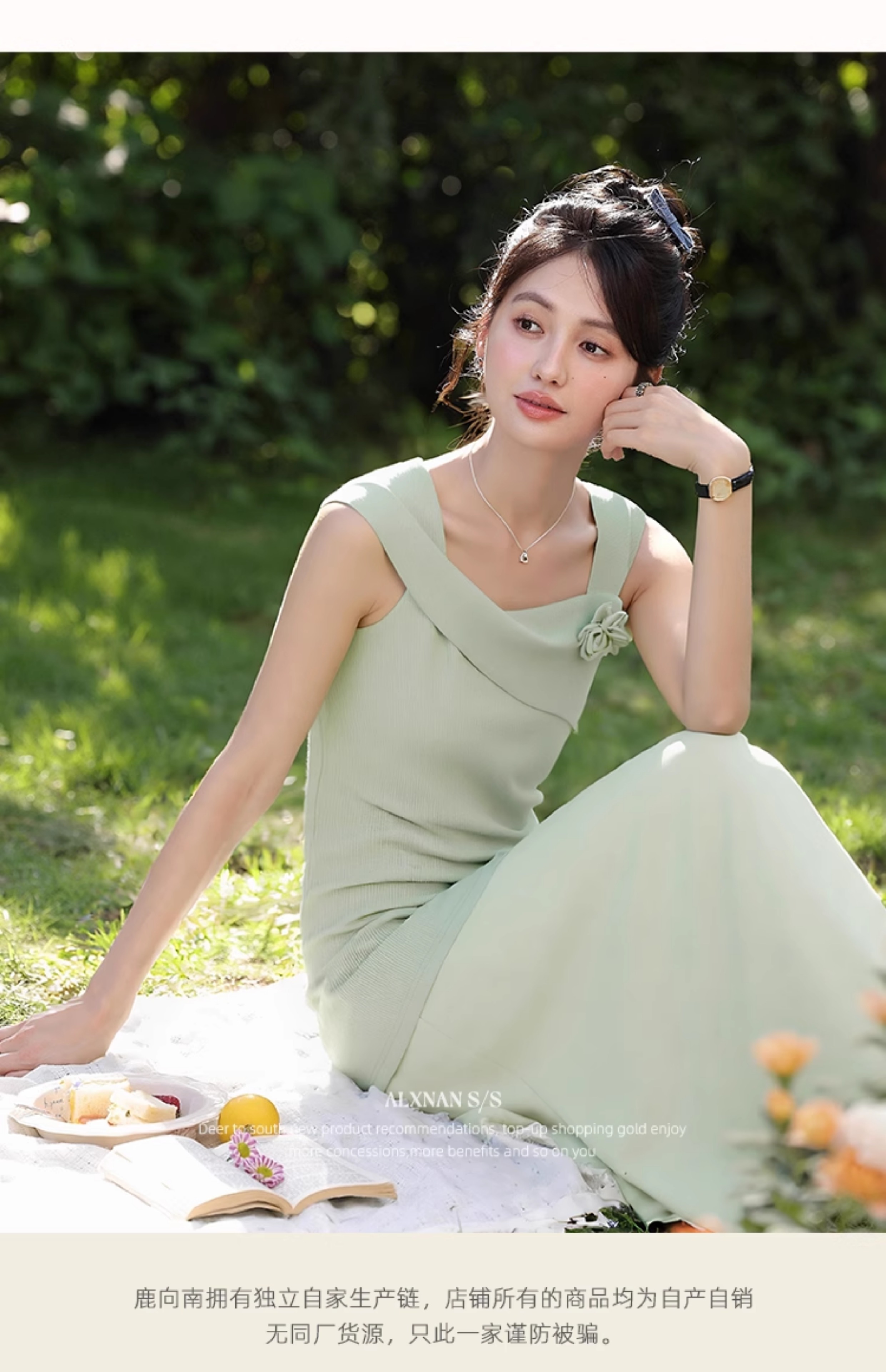 鹿向南「茶茉次方」法式浅绿色吊带连衣裙女夏季收腰显瘦气质裙子DYL661765