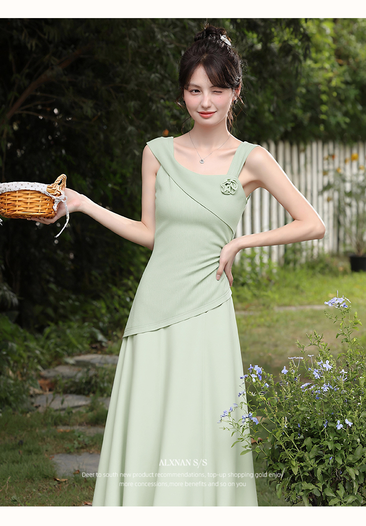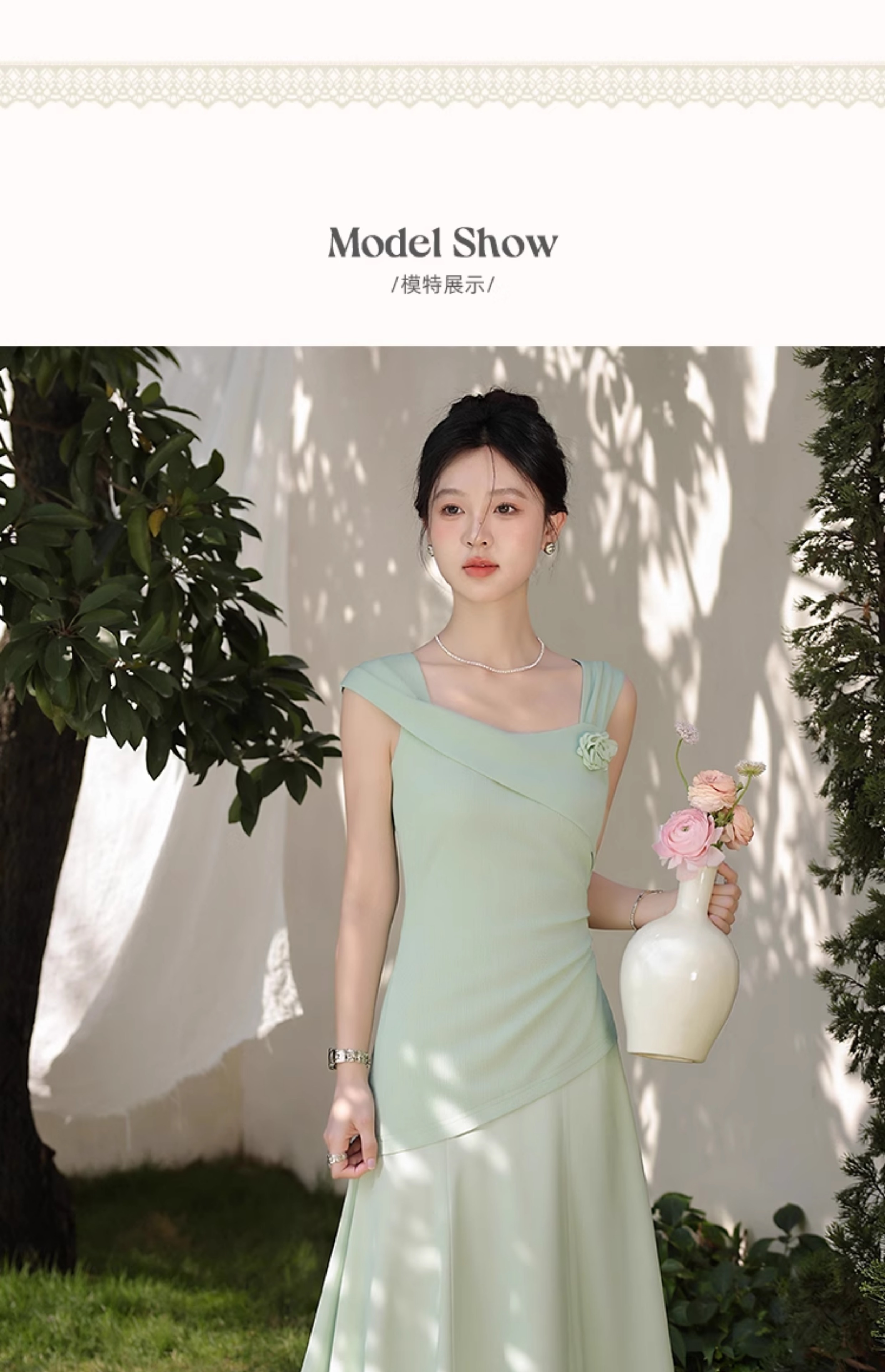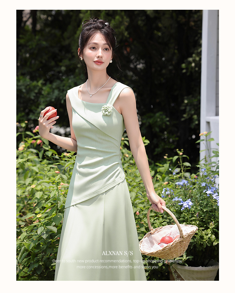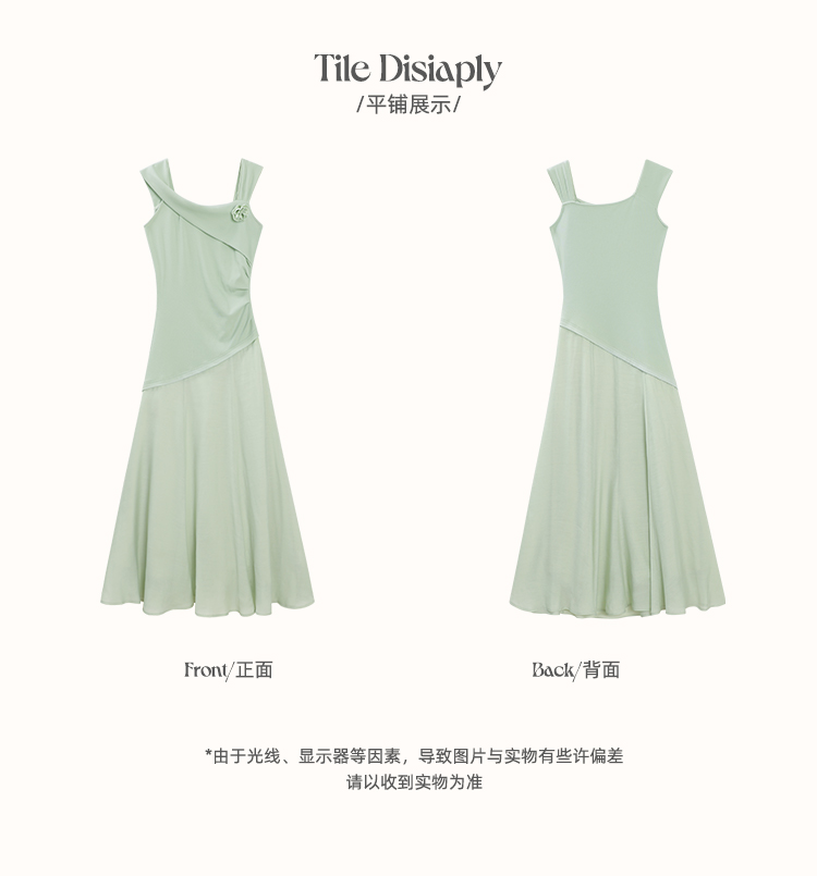 鹿向南「茶茉次方」法式浅绿色吊带连衣裙女夏季收腰显瘦气质裙子DYL661765