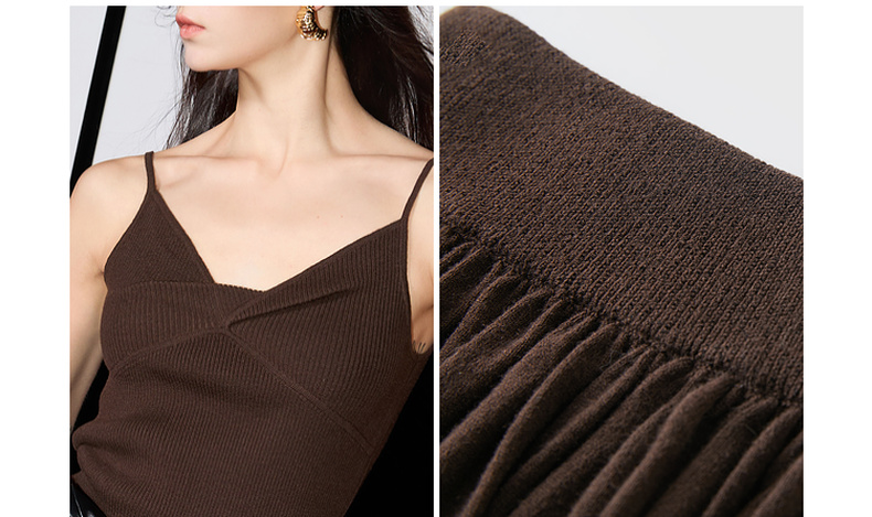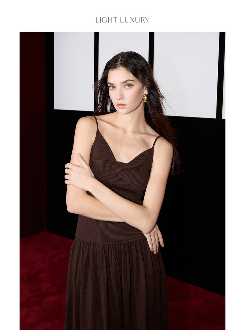 三彩2025春季新款针织套装吊带修身高腰半身裙长裙两件套S