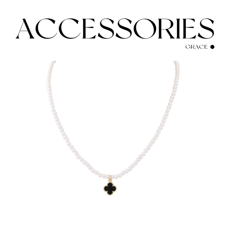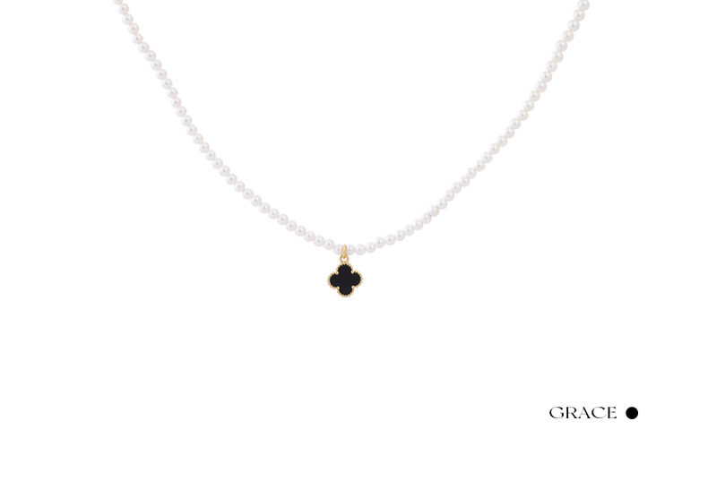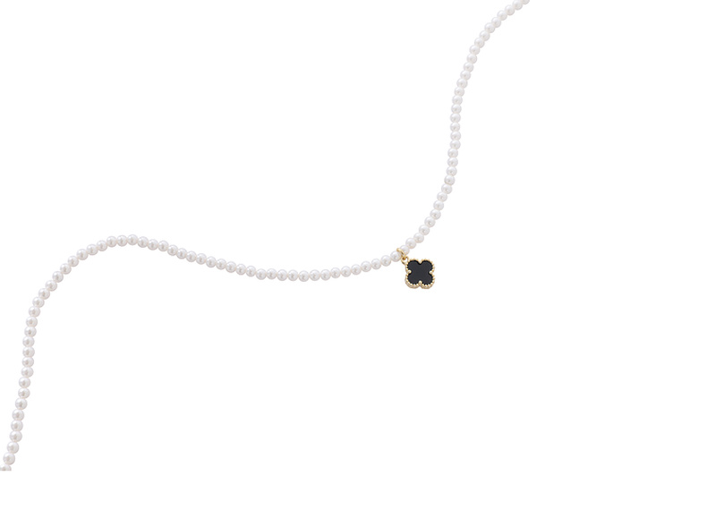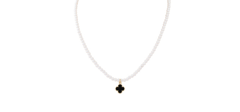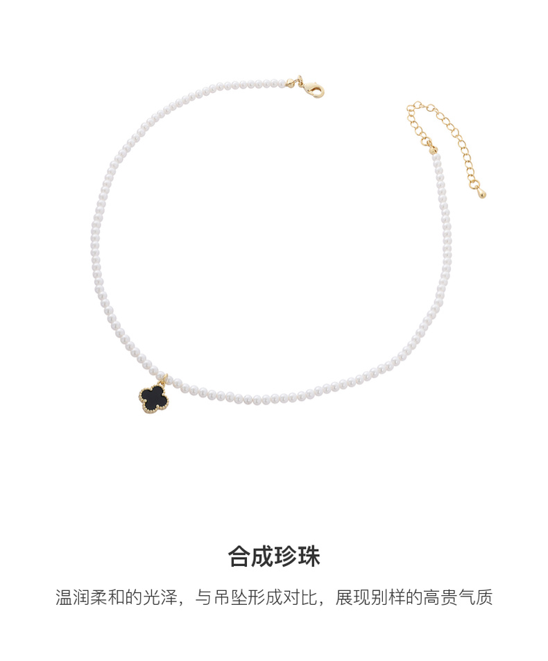 三彩2025新款复古黑金四叶海棠纹吊坠珍珠项链锁骨链经典通勤约会