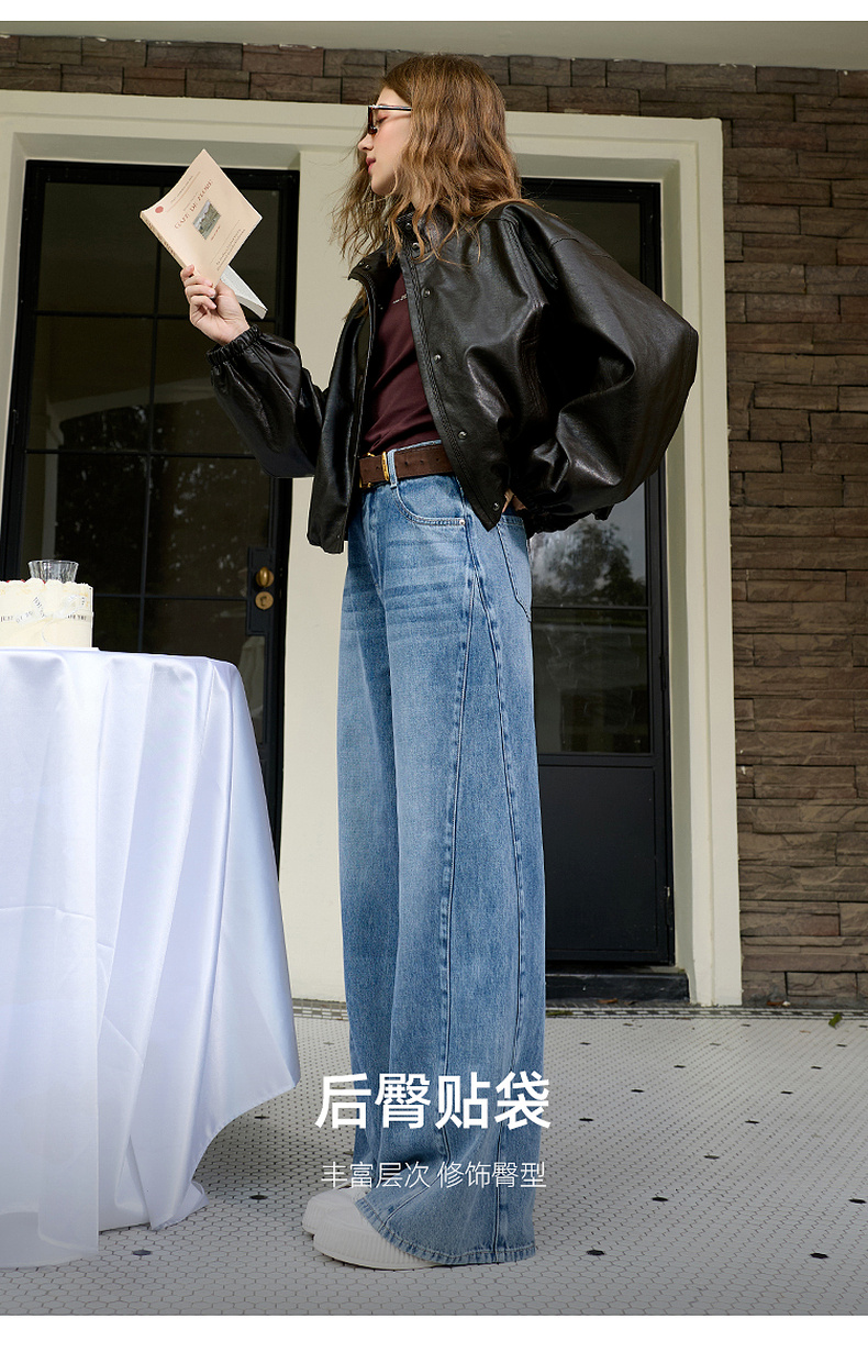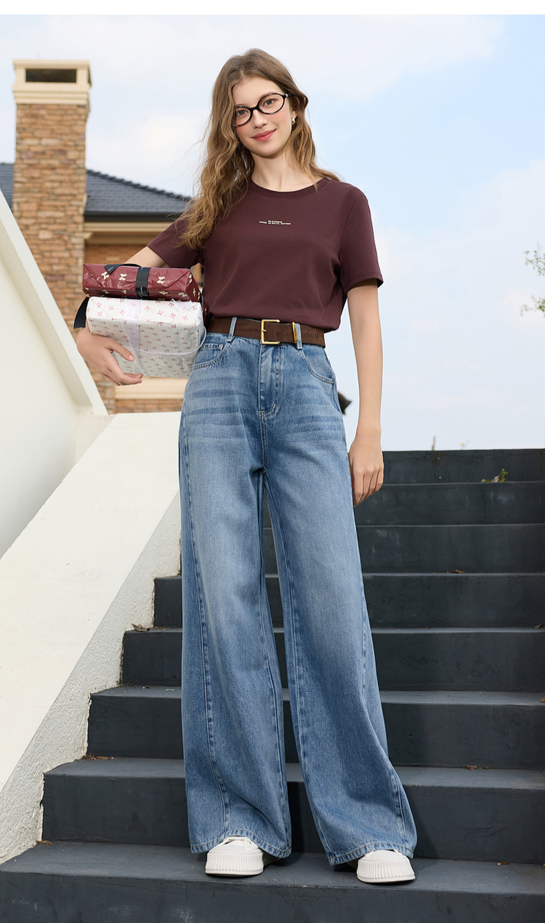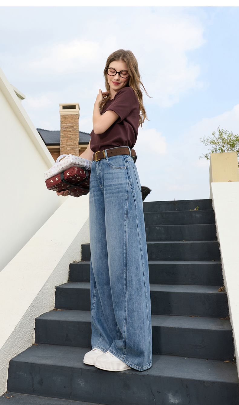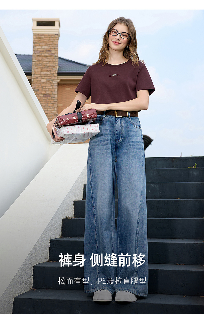 三彩2026春季新款休闲裤牛仔裤高腰阔腿裤长裤宽松显瘦垂感M