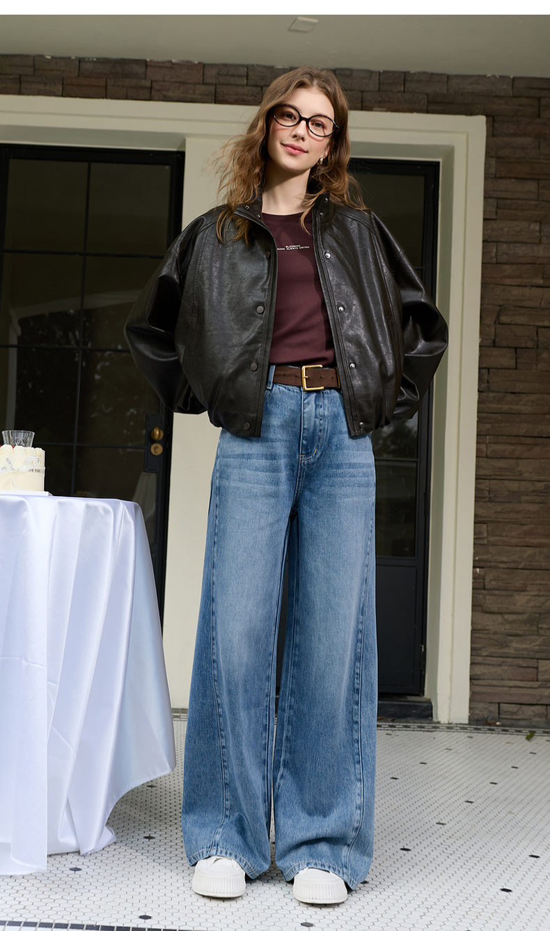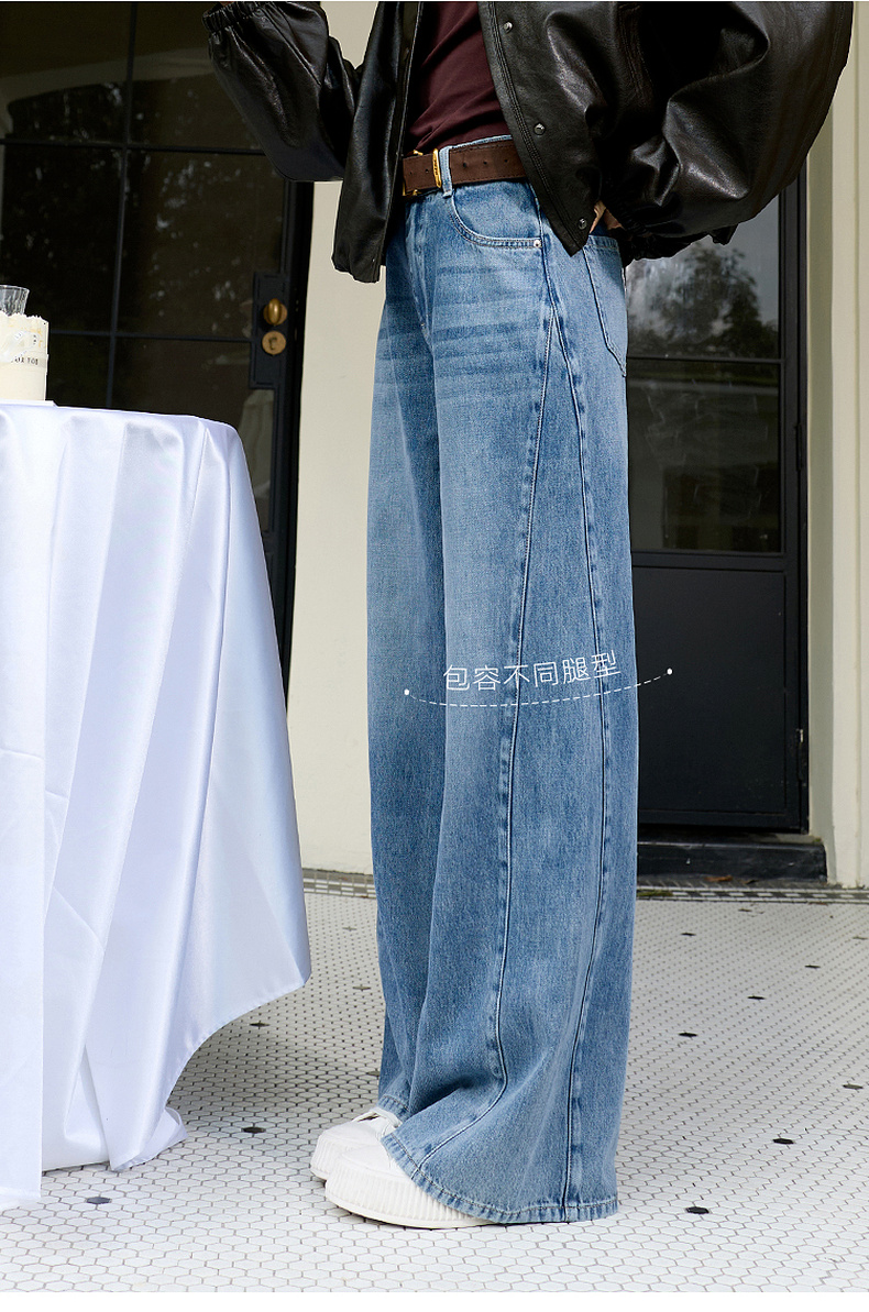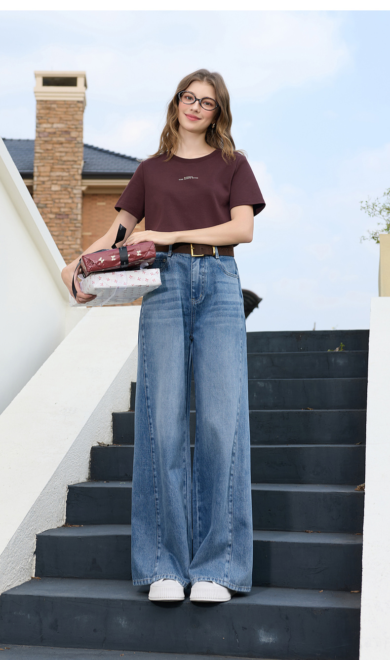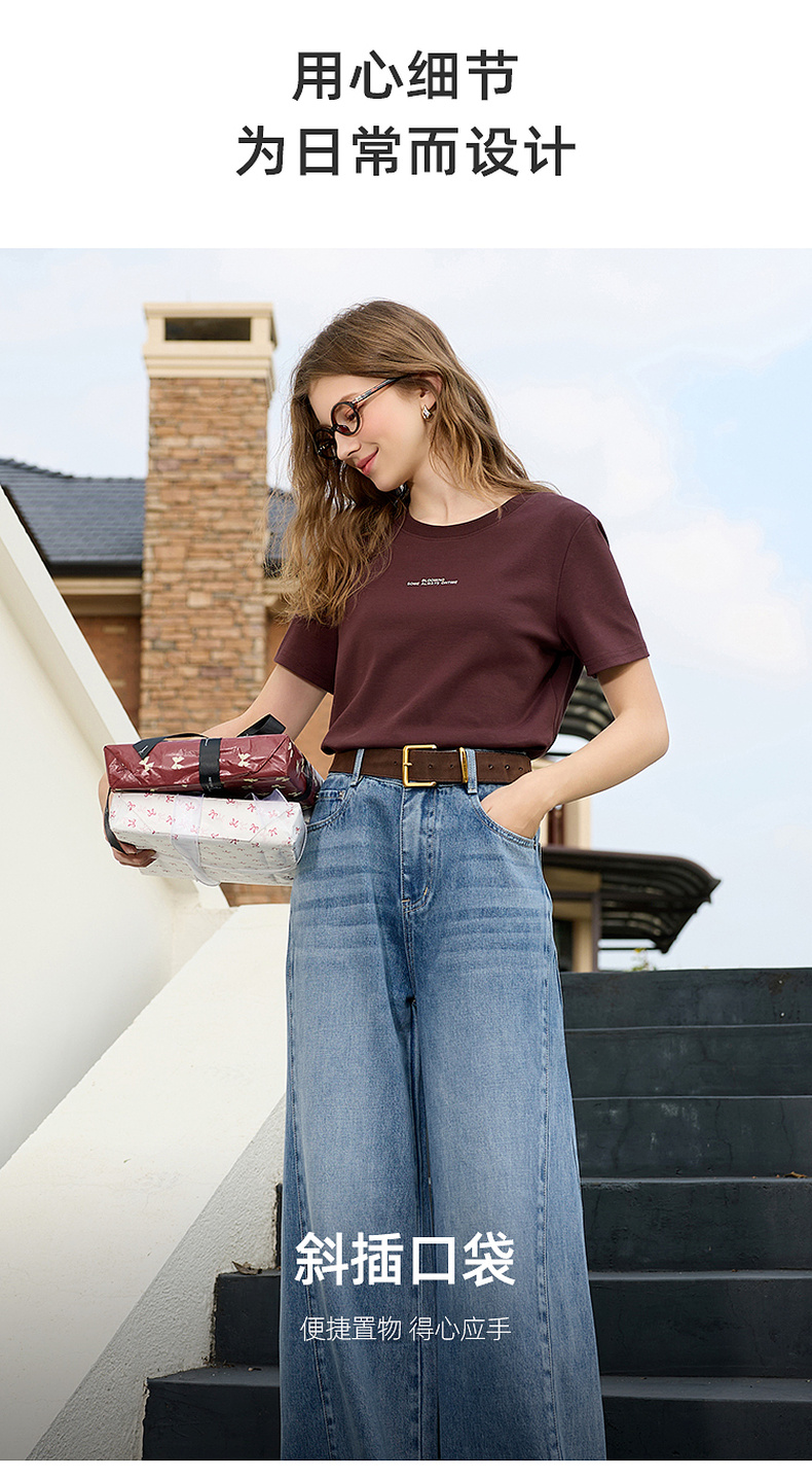 三彩2026春季新款休闲裤牛仔裤高腰阔腿裤长裤宽松显瘦垂感M