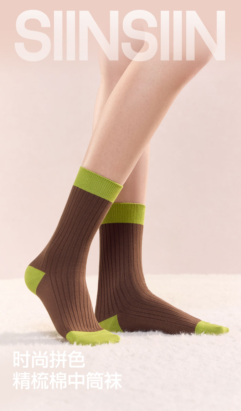 SIINSIIN中筒袜子女款纯棉2025新款爆款运动吸汗防臭秋冬拼色长袜