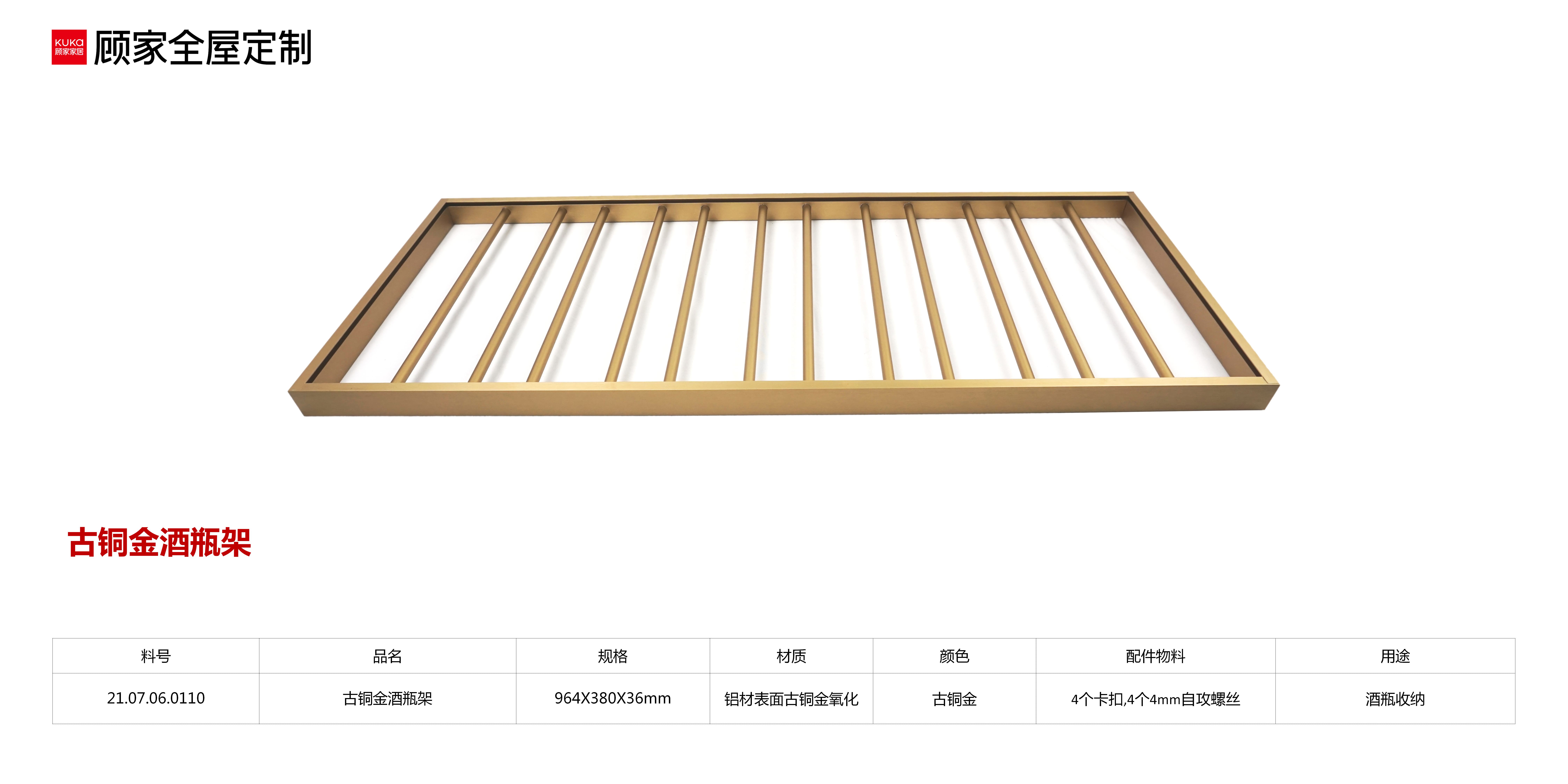 1-衣柜收纳五金-酒杯架、酒瓶架-4-古铜金酒瓶架