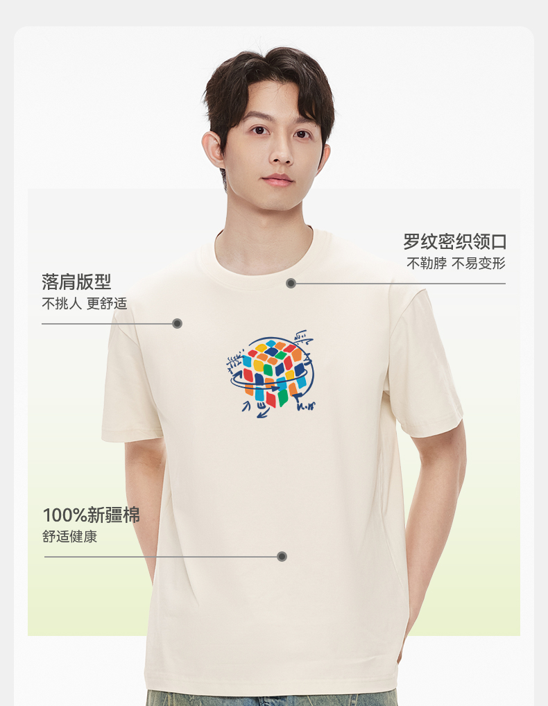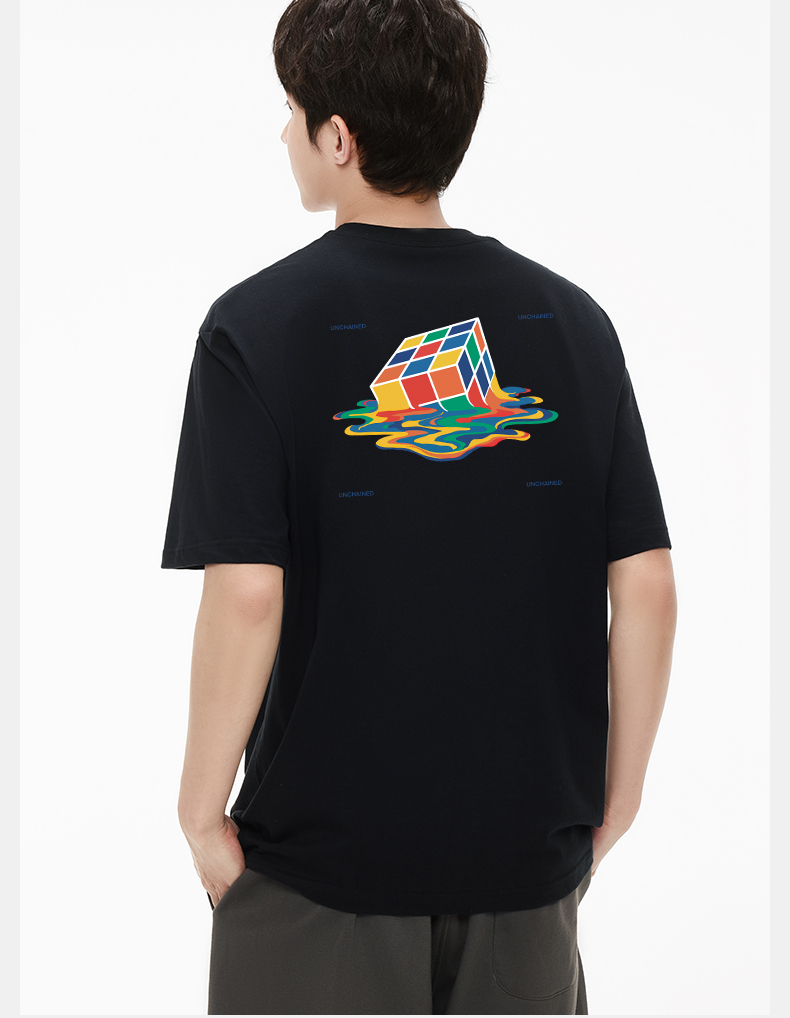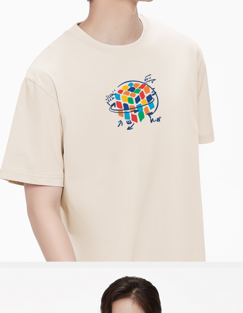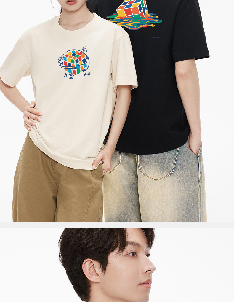 「棉的美学」宽松潮牌纯色休闲夏季T恤女纯棉魔方印花百搭时尚短袖