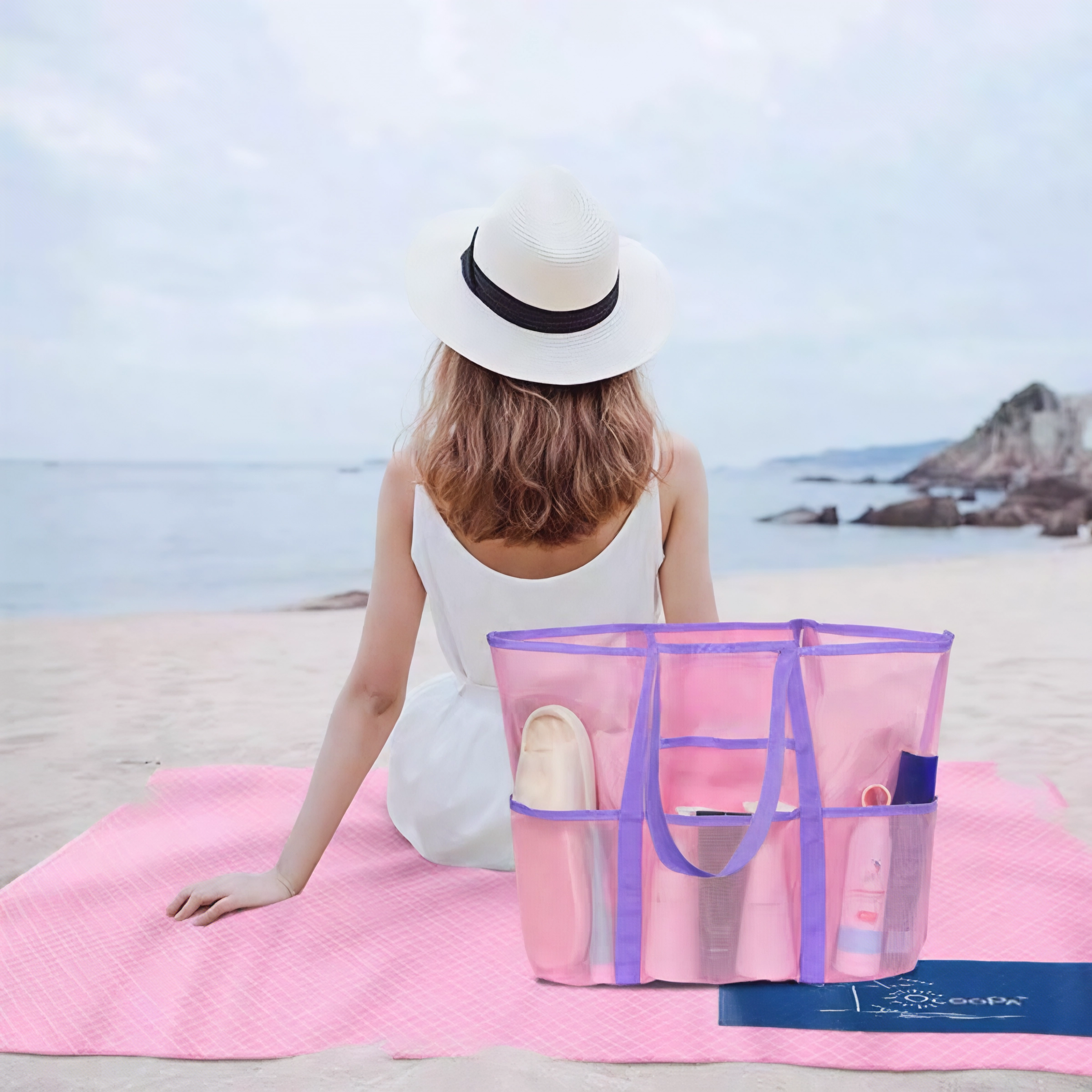 这款宽敞的网袋轻松整理,设计用来整齐收纳您的泳衣、洗漱用品及杂项物品,非常适合海滩及旅行收纳。