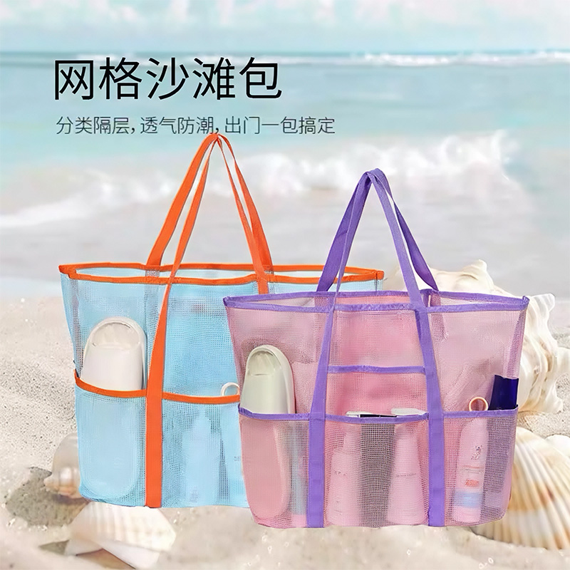 网状沙滩包 手提包大容量沙滩包 旅游健身度假收纳单肩托特包