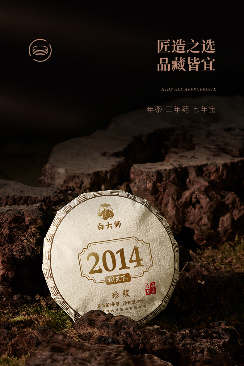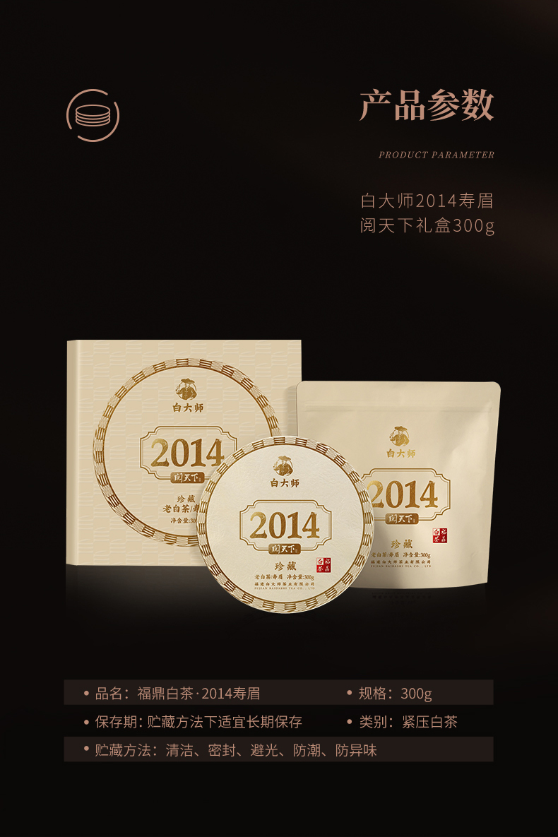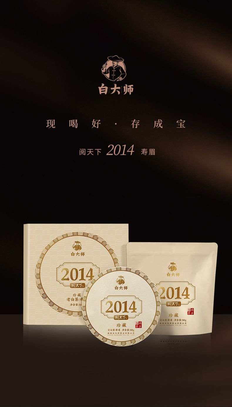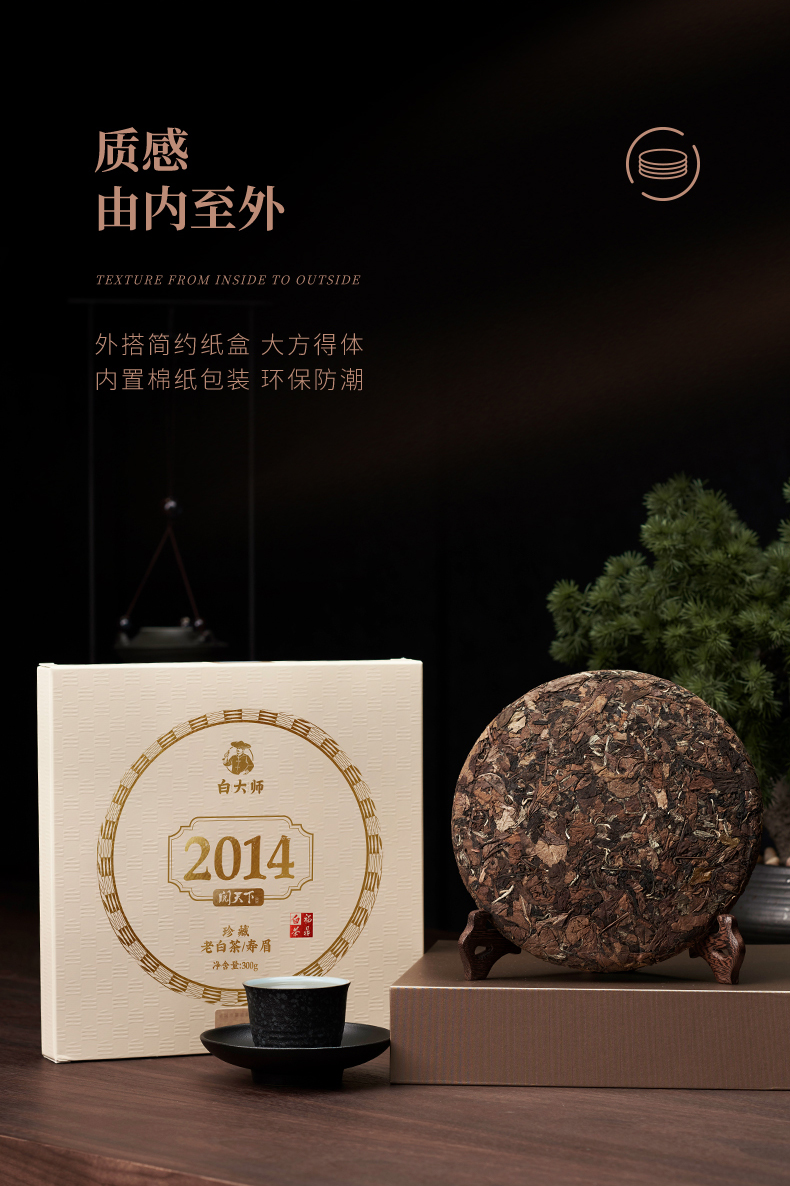 白大师阅天下系列2014年高山福鼎白茶陈年枣香茶叶寿眉茶饼300g