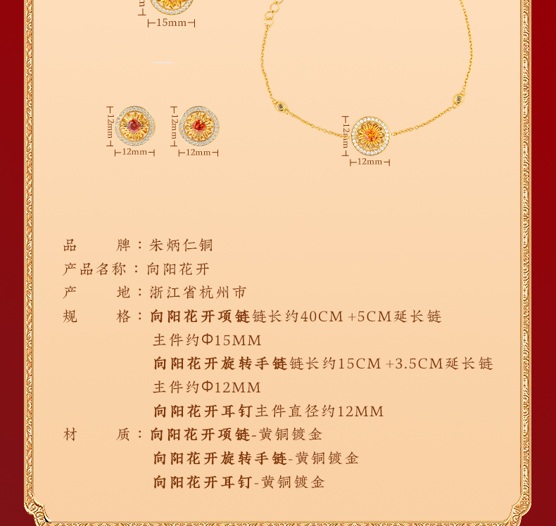 朱炳仁铜向阳花开首饰耳钉/手链/项链【爆仓中拍下7-15天发出】