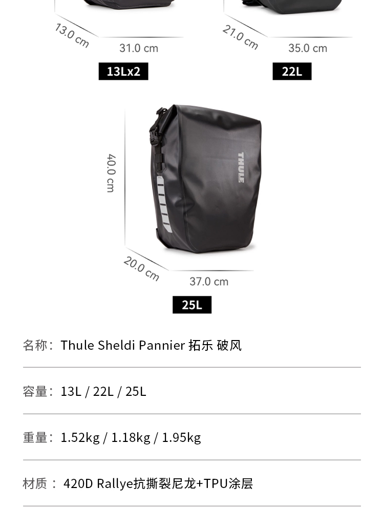 瑞典Thule Sheldi破风 长途骑行 全防水自行车驮包 坚固耐磨通勤