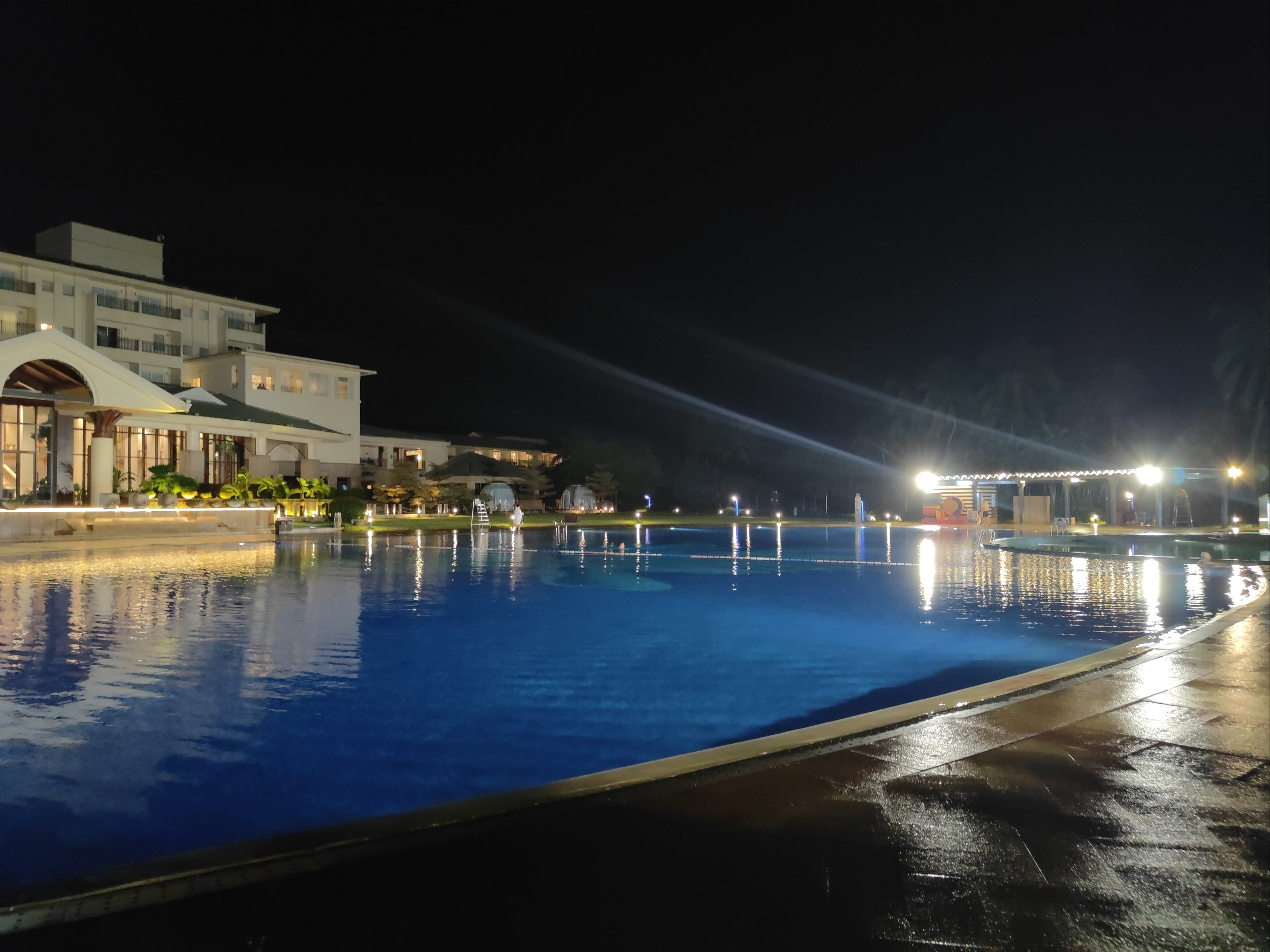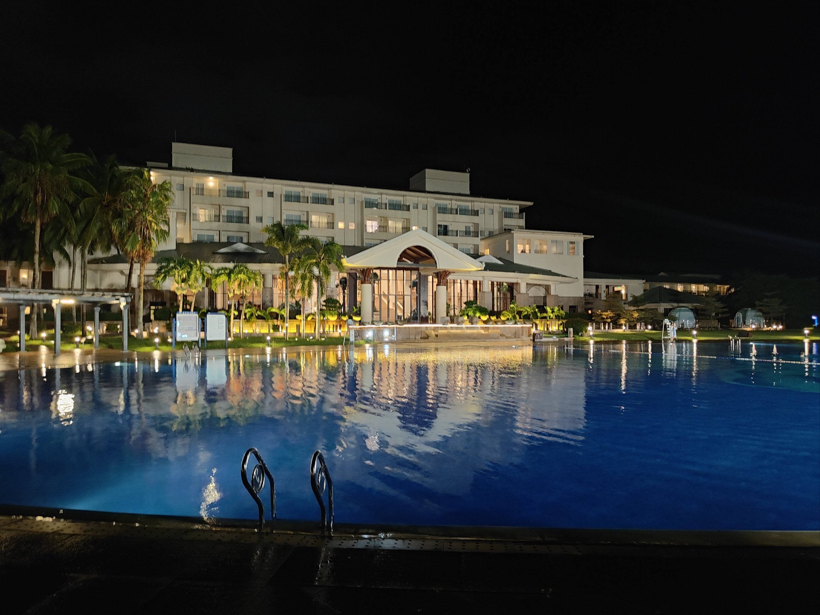 酒店位于海南省琼海市博鳌金海岸大道8号,紧邻万泉河入海口,部分客房可直接观赏河海交汇景观,酒店由主楼、棕榈岛、椰林岛、槟榔岛组成,棕榈岛属于独立区域,包含园景房及公共设施。