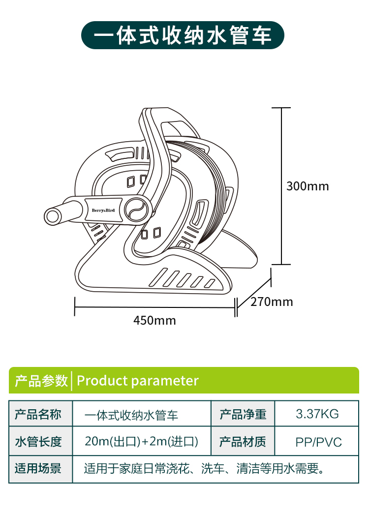 Berry&Bird一体式收纳水管车