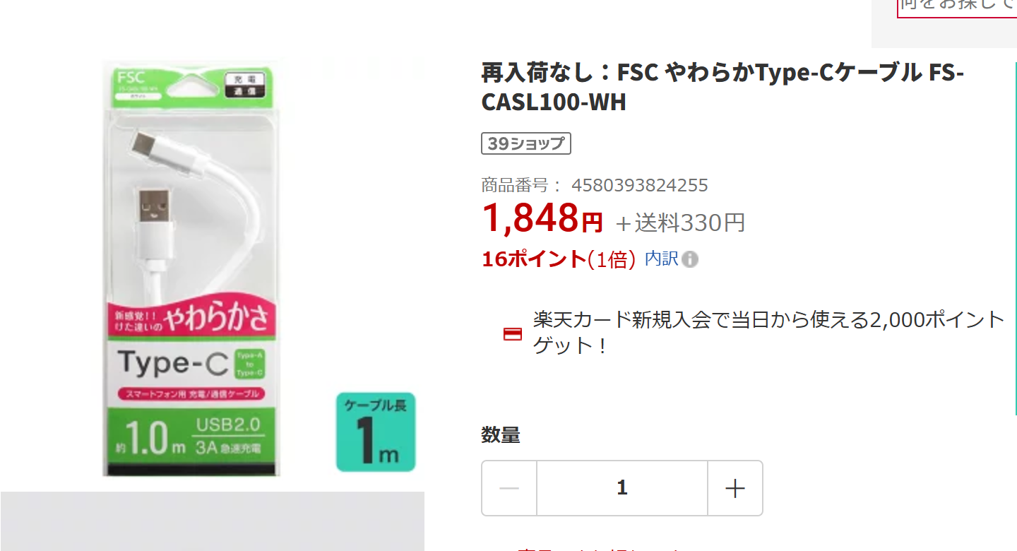 日本 3A Type-C快充数据线FS-CASL100-WH(1米)