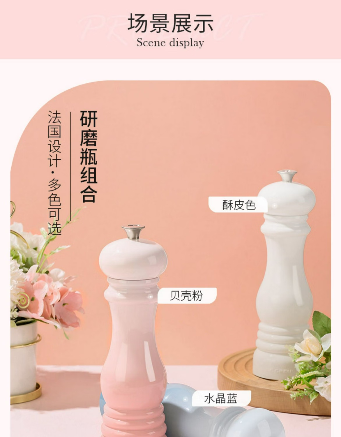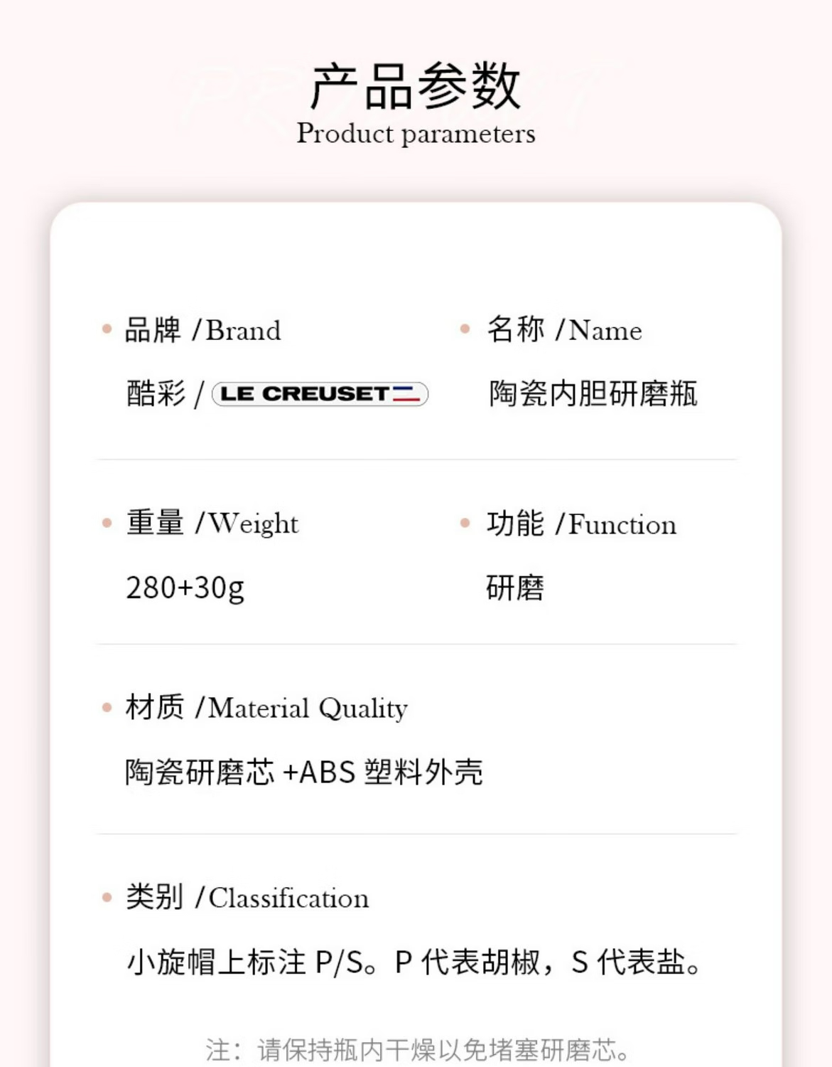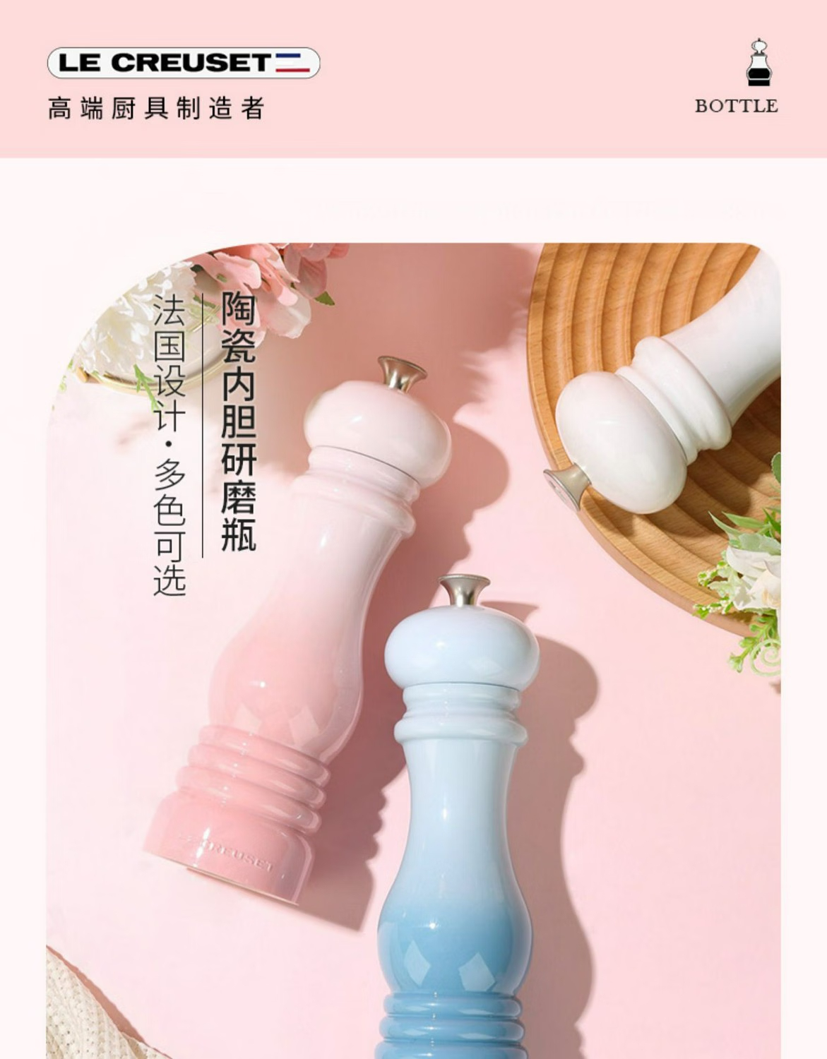 法国进口(Le Creuset)酷彩调料研磨器(盐+胡椒)迷你版11cm哑光黑色