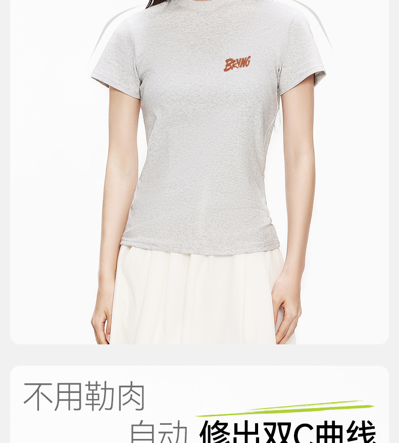 「棉的美学」极简正肩字母印花短袖T恤2025新款修身显瘦休闲上衣