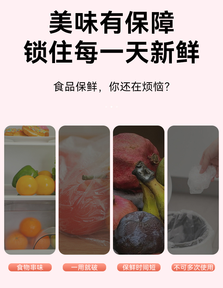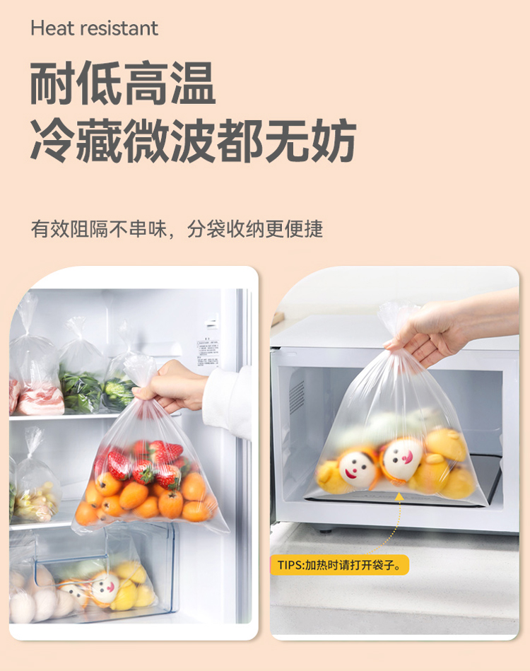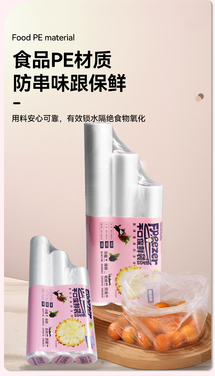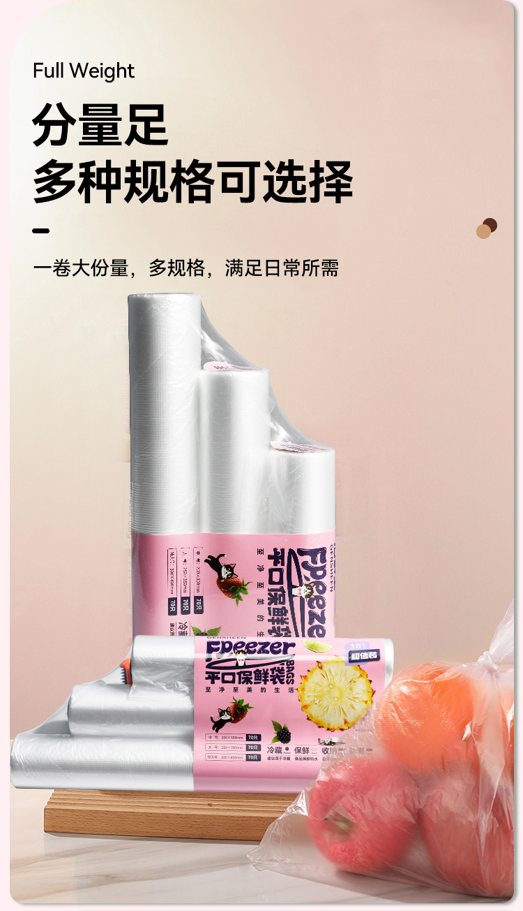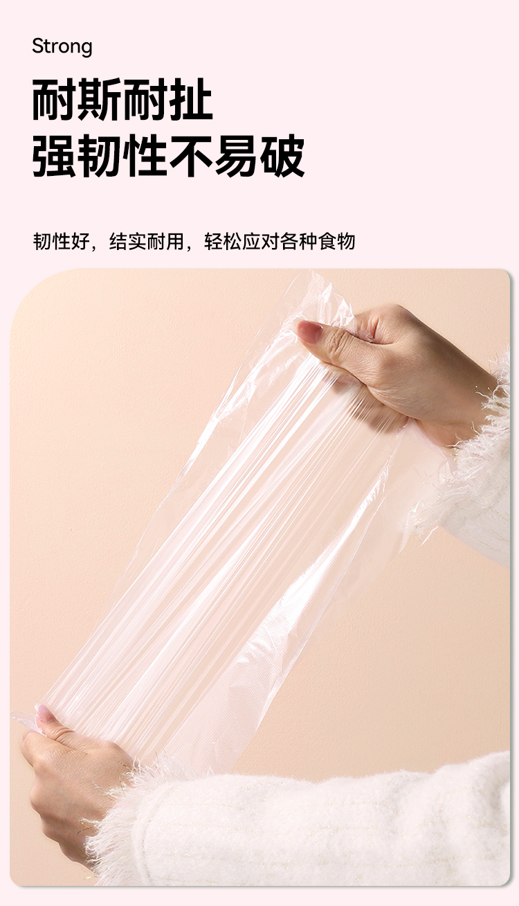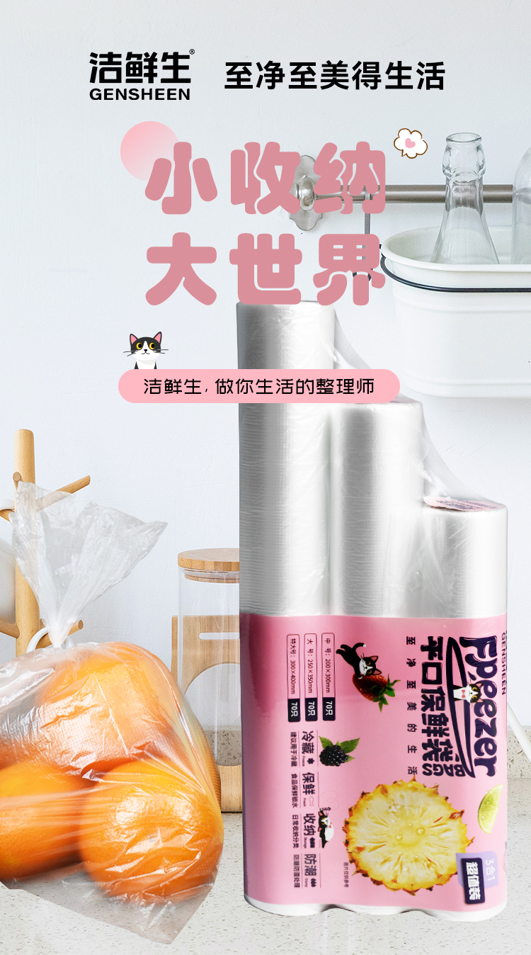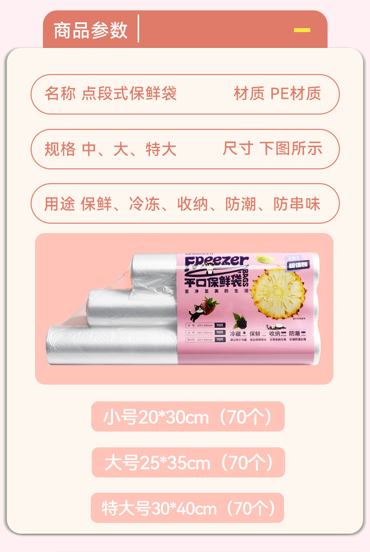 洁鲜生平口保鲜袋三联包210只中大特各1卷(猫款粉色)