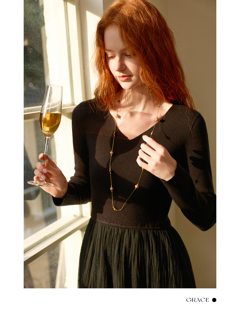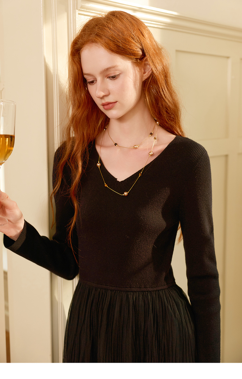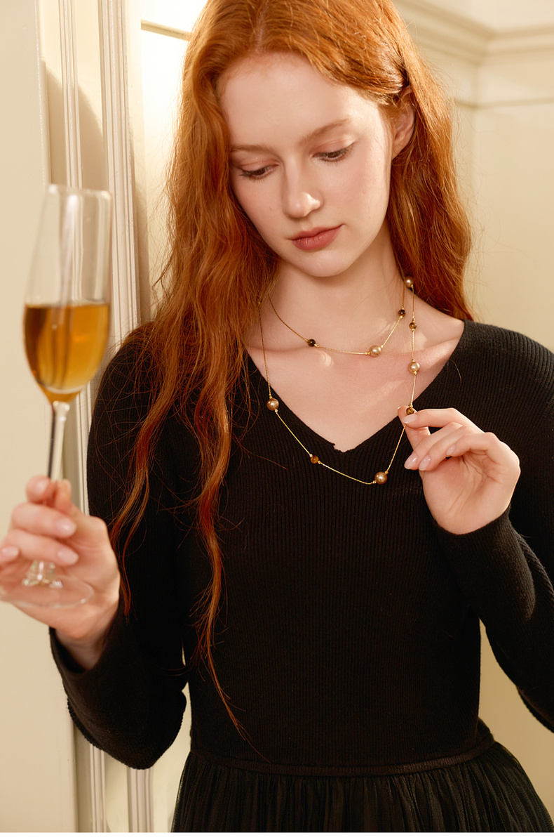 【满天星】三彩2025新款法式复古珍珠套链项链美拉德叠戴毛衣链女