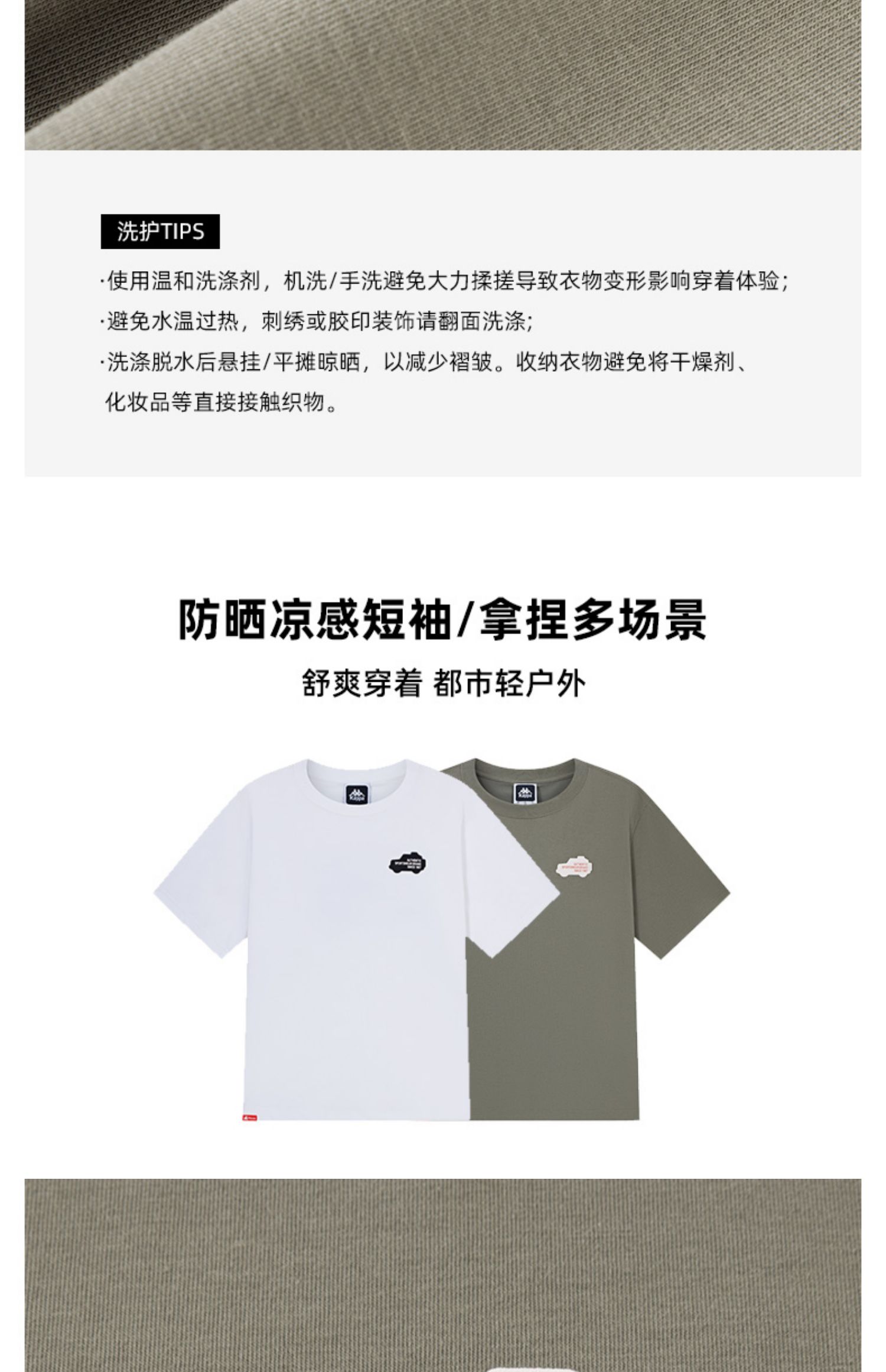 Kappa卡帕背靠背运动短袖t恤2024新款夏季凉感防晒半袖上衣男款潮K0E52TD84