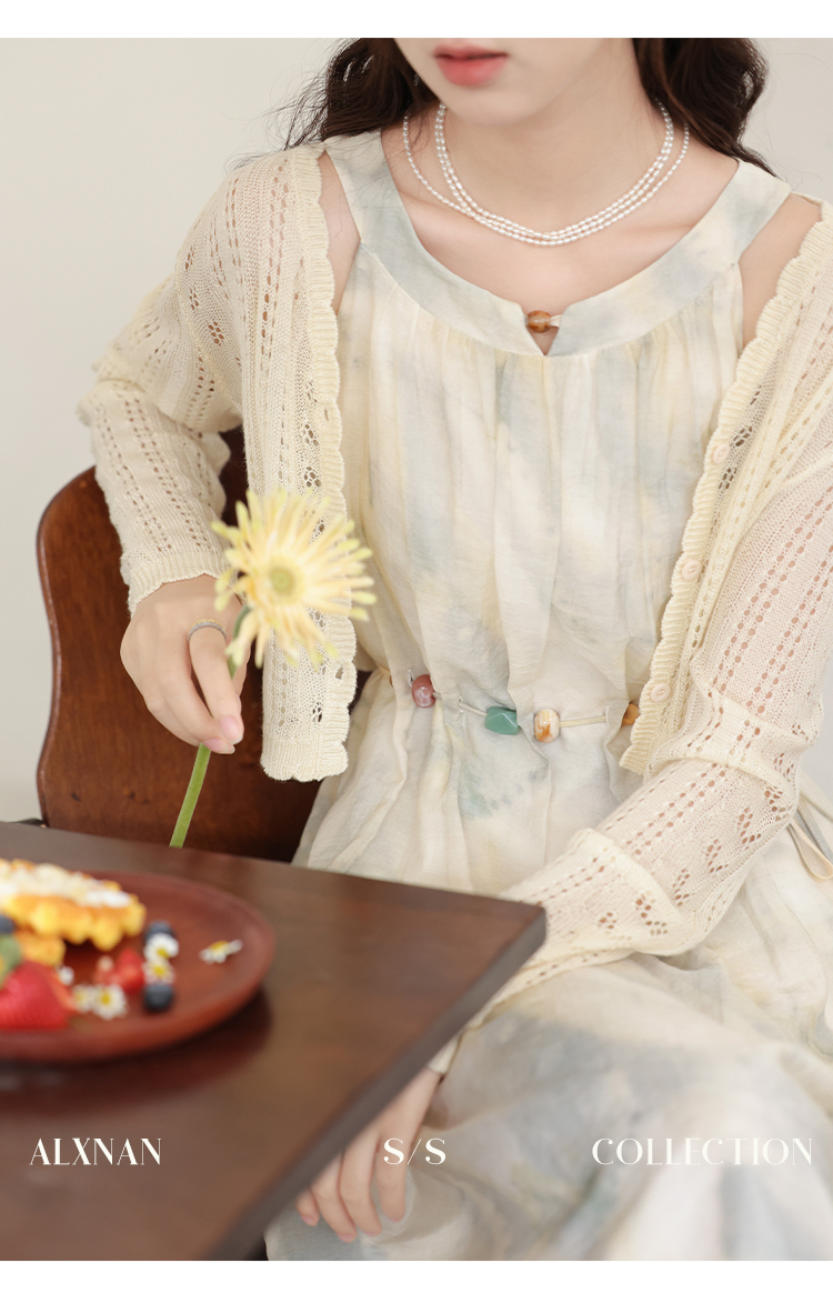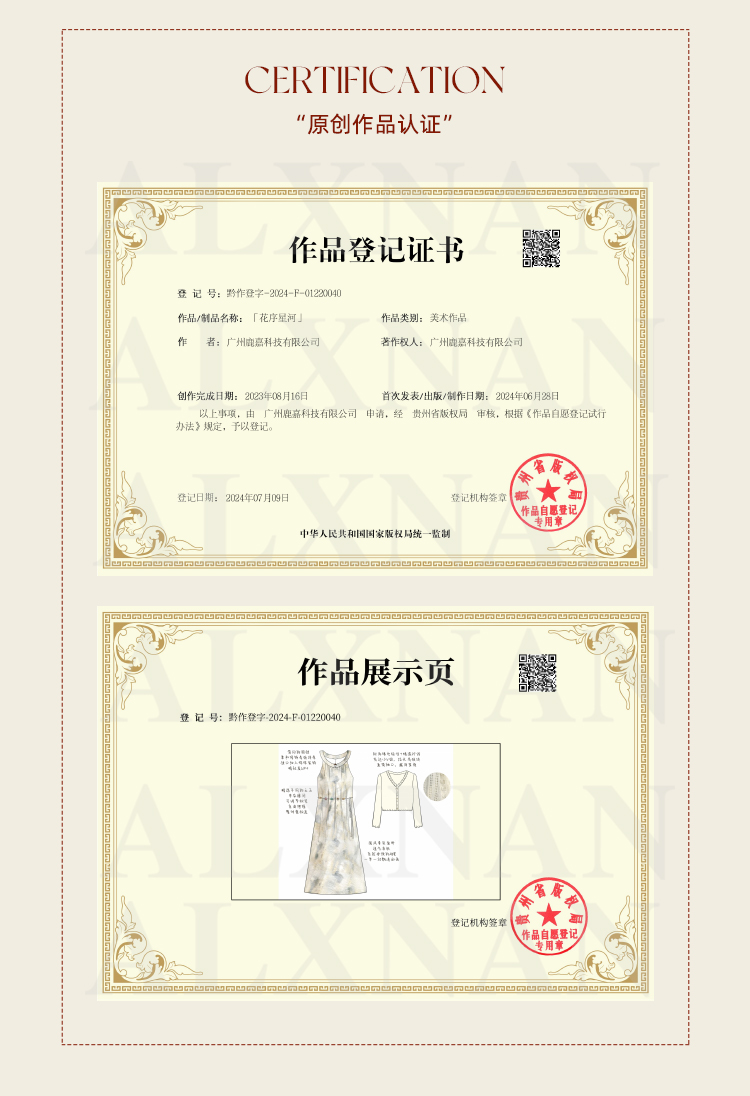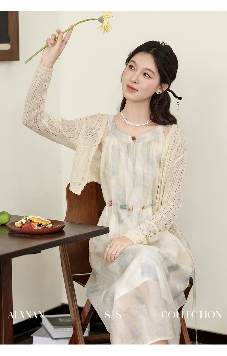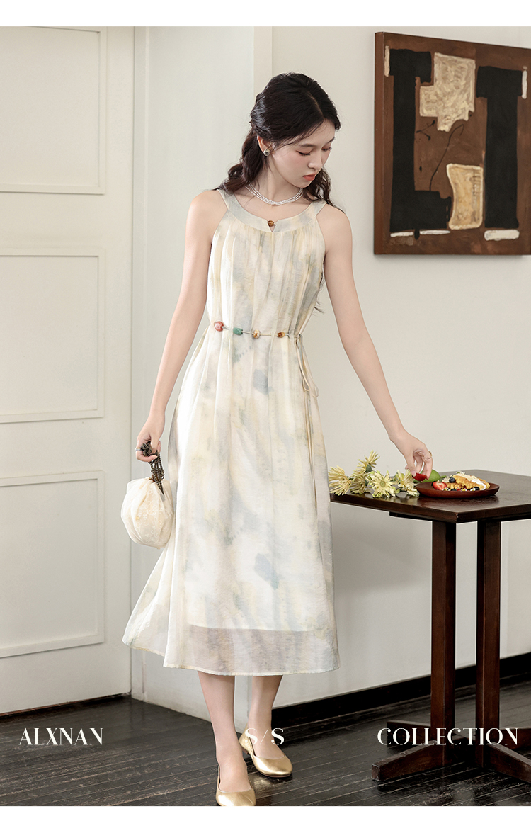 【6折秒杀】鹿向南「花序星河」法式连衣裙女秋收腰显瘦气质长裙水墨画吊带裙L38701