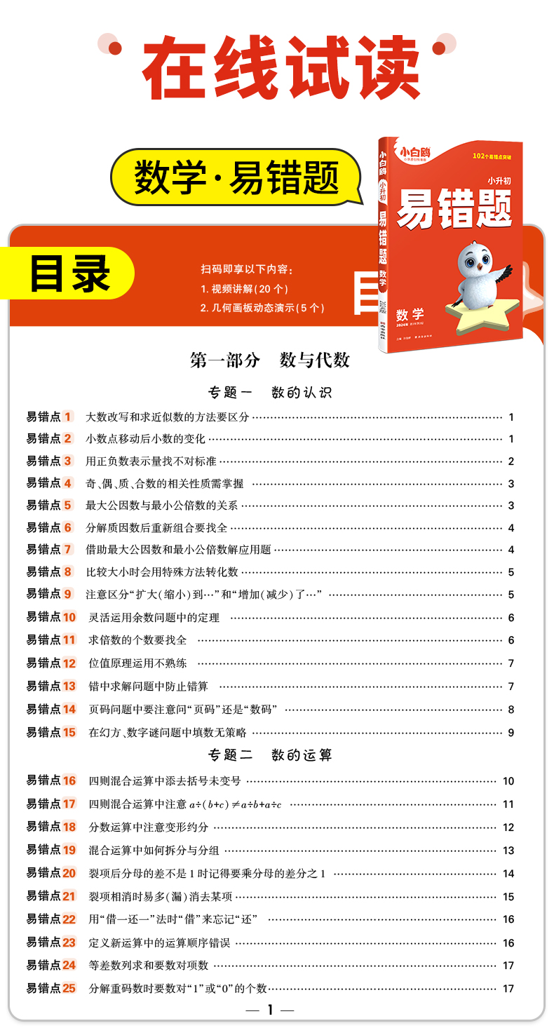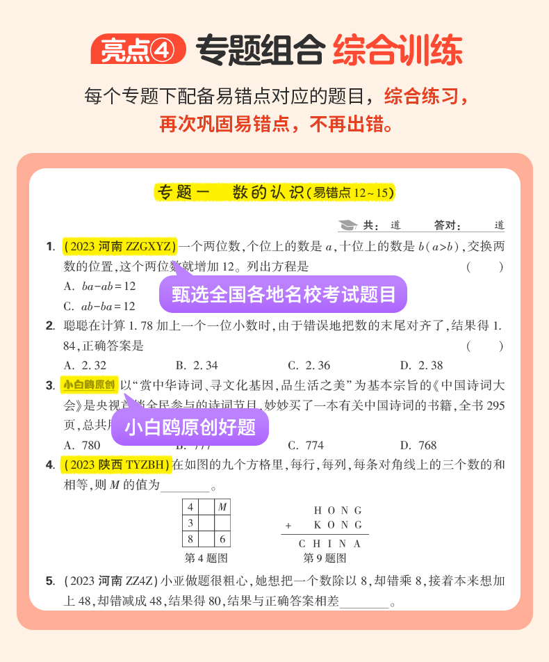 【小白鸥】小学数学易错题思维专项训练四五六年级高频刷题计算题练习题必刷题知识点汇总2024训练强化小学毕业暑假总复习资料万唯