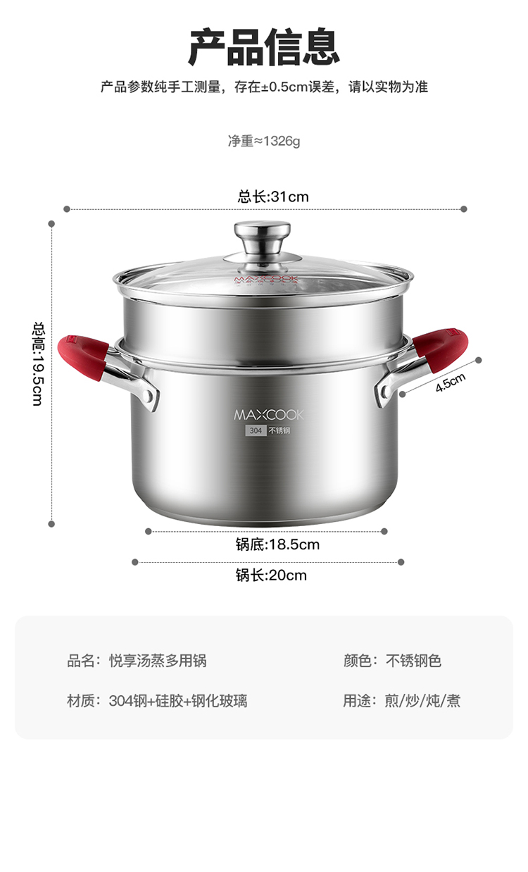 美厨悦享汤蒸多用锅20cm MCLP-602