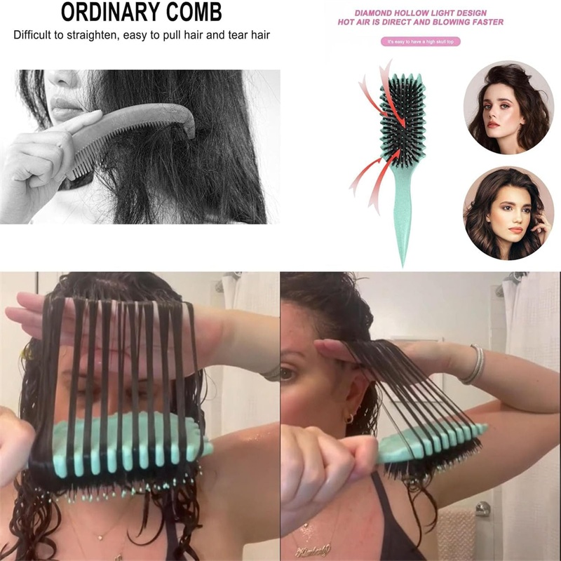 【高端野猪刷毛耐用】野猪刷毛刷,造型与打结效果卓越。采用高品质野猪刷,卷发刷定义刷保证持久耐用。温和的刷毛防止断裂和损伤,适合所有发质和卷发型。