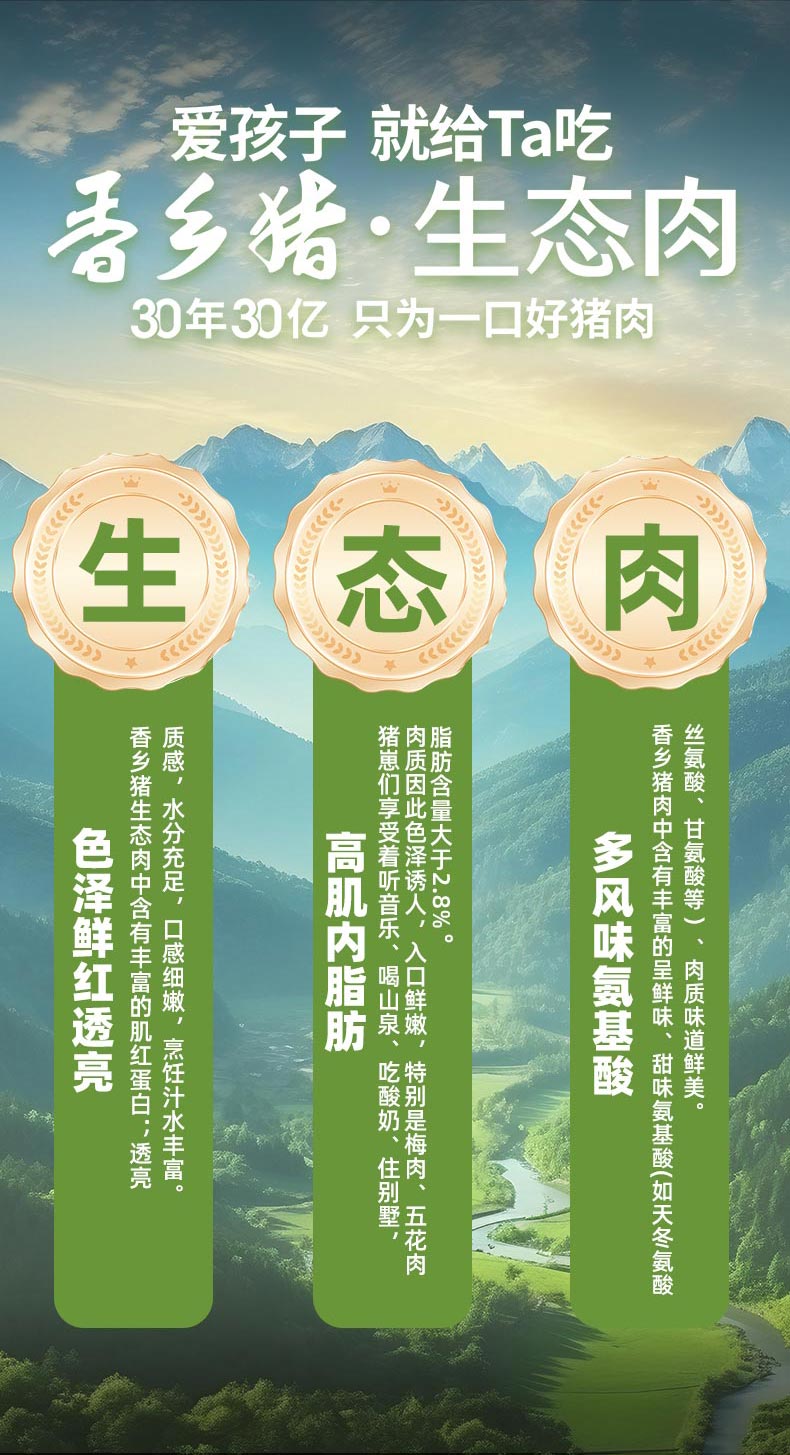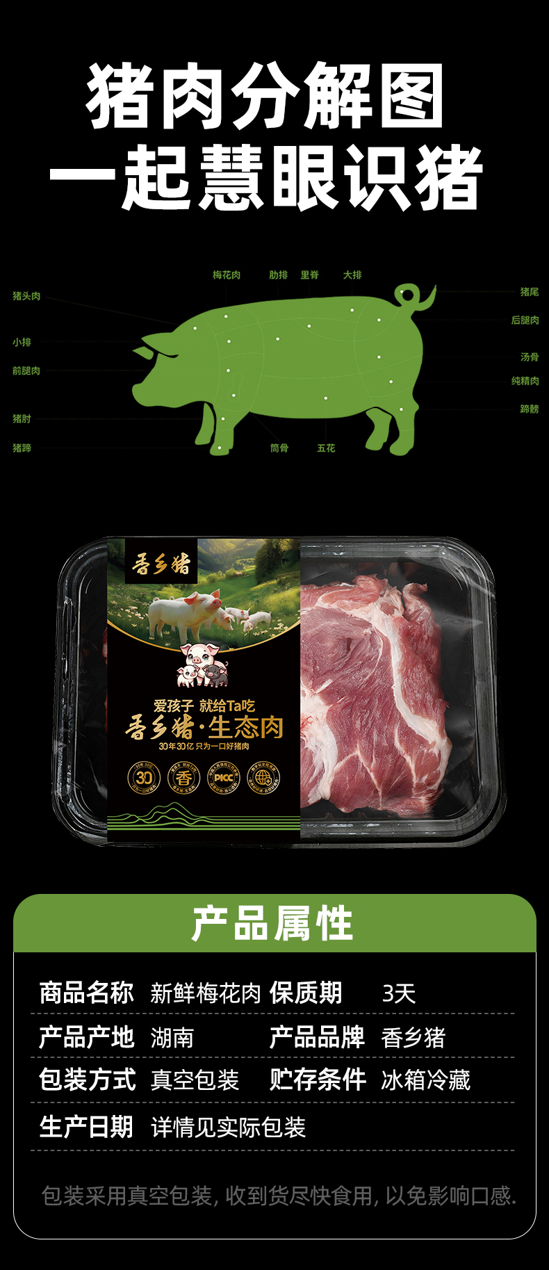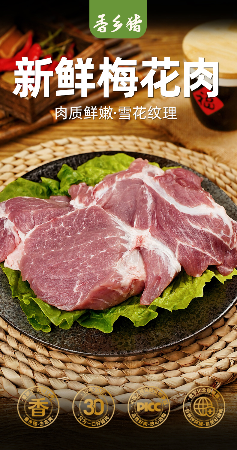 唐人神香乡猪梅花肉500g*3 无抗生素生态肉原切生鲜新鲜猪肉鲜嫩