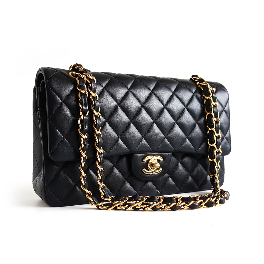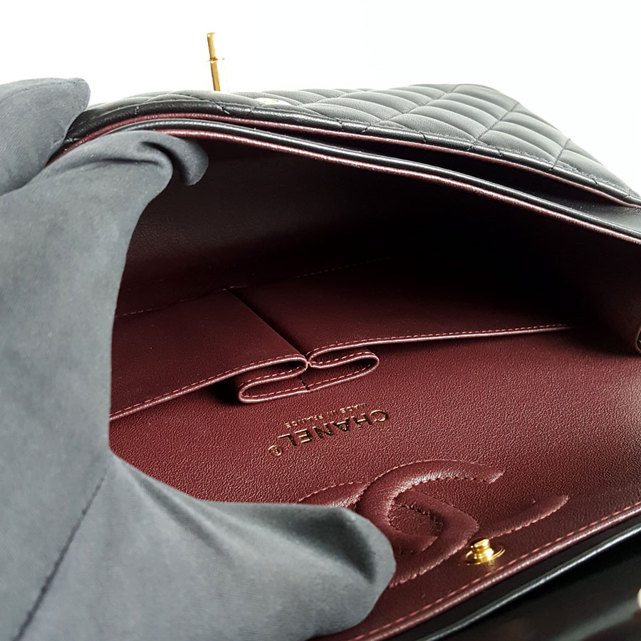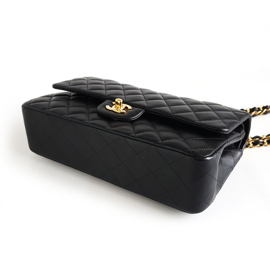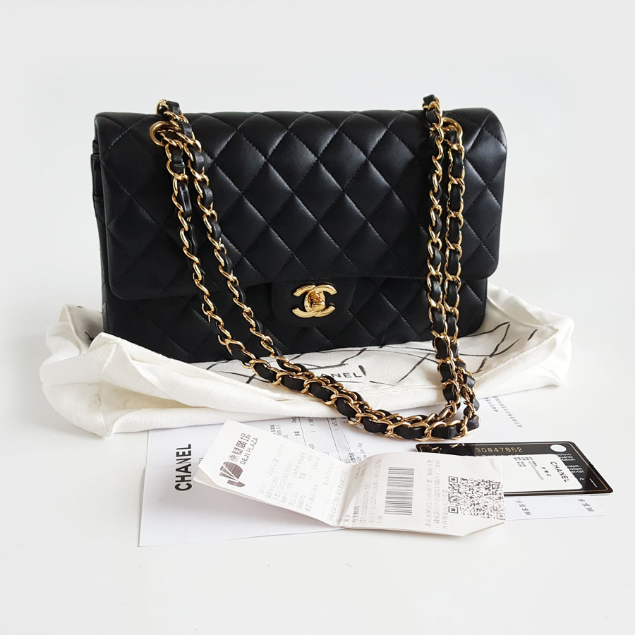 【95新】CHANEL香奈儿CF系列A01112 Y01295 94305中号黑金羊皮CF链条包单肩斜挎包女士130426AK29