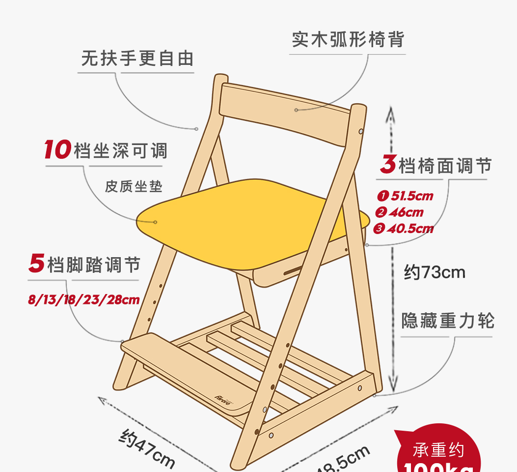 Faroro可调节儿童学习椅可升降实木座椅家用学生专用凳子写字椅子 不支持7天无理由 拆封前可以退,需要扣除发货运费