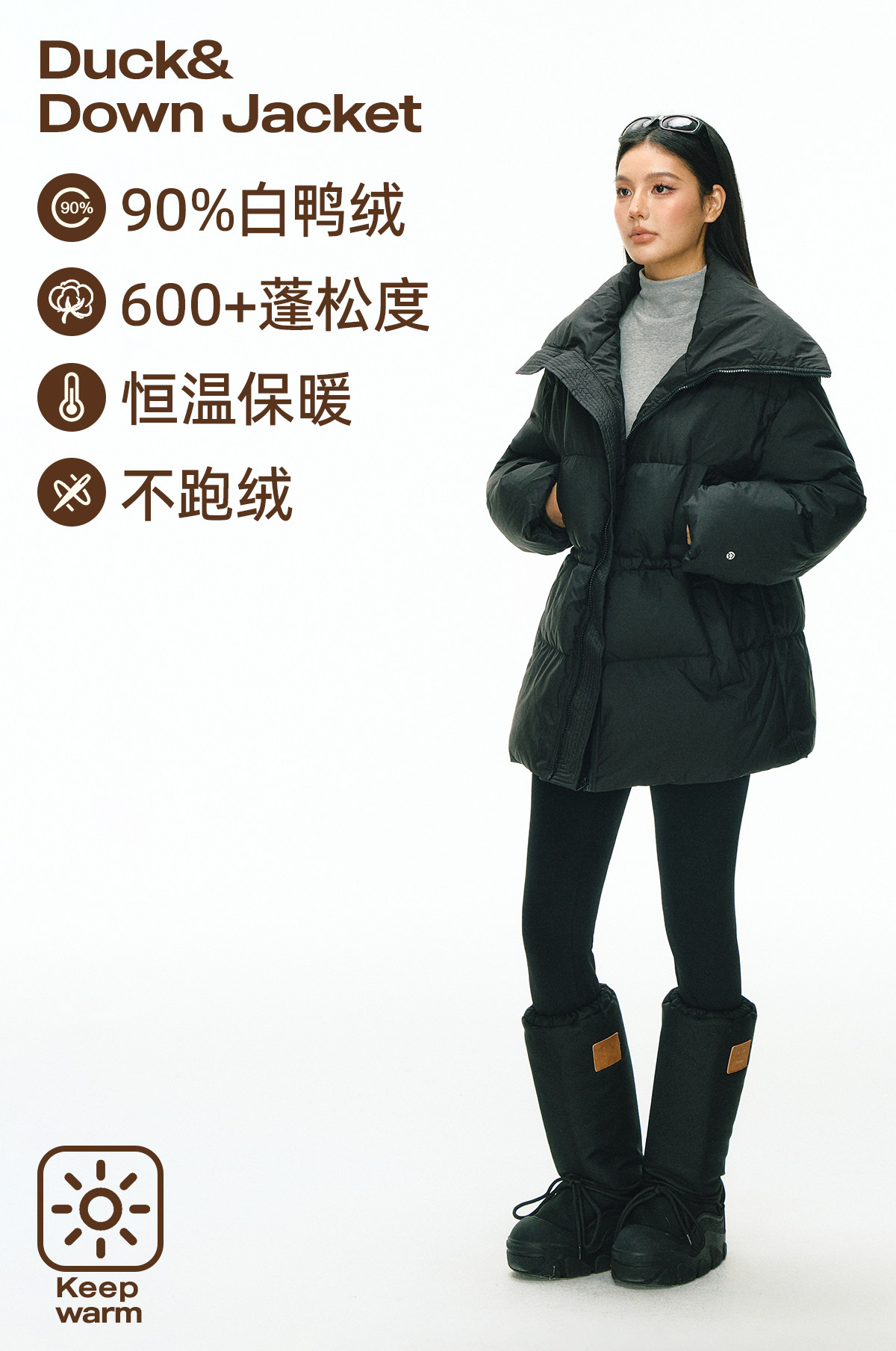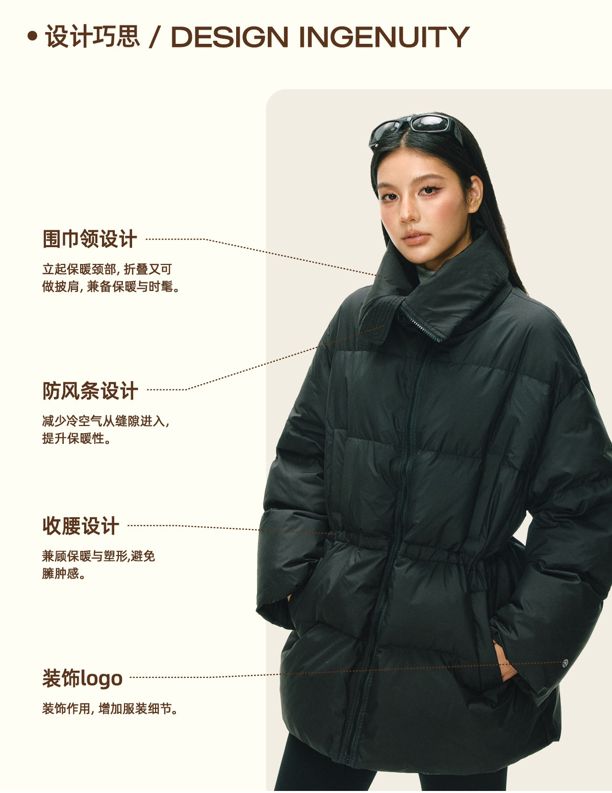 Ariseism 美式复古设计感中长款羽绒服女冬季新款保暖外套