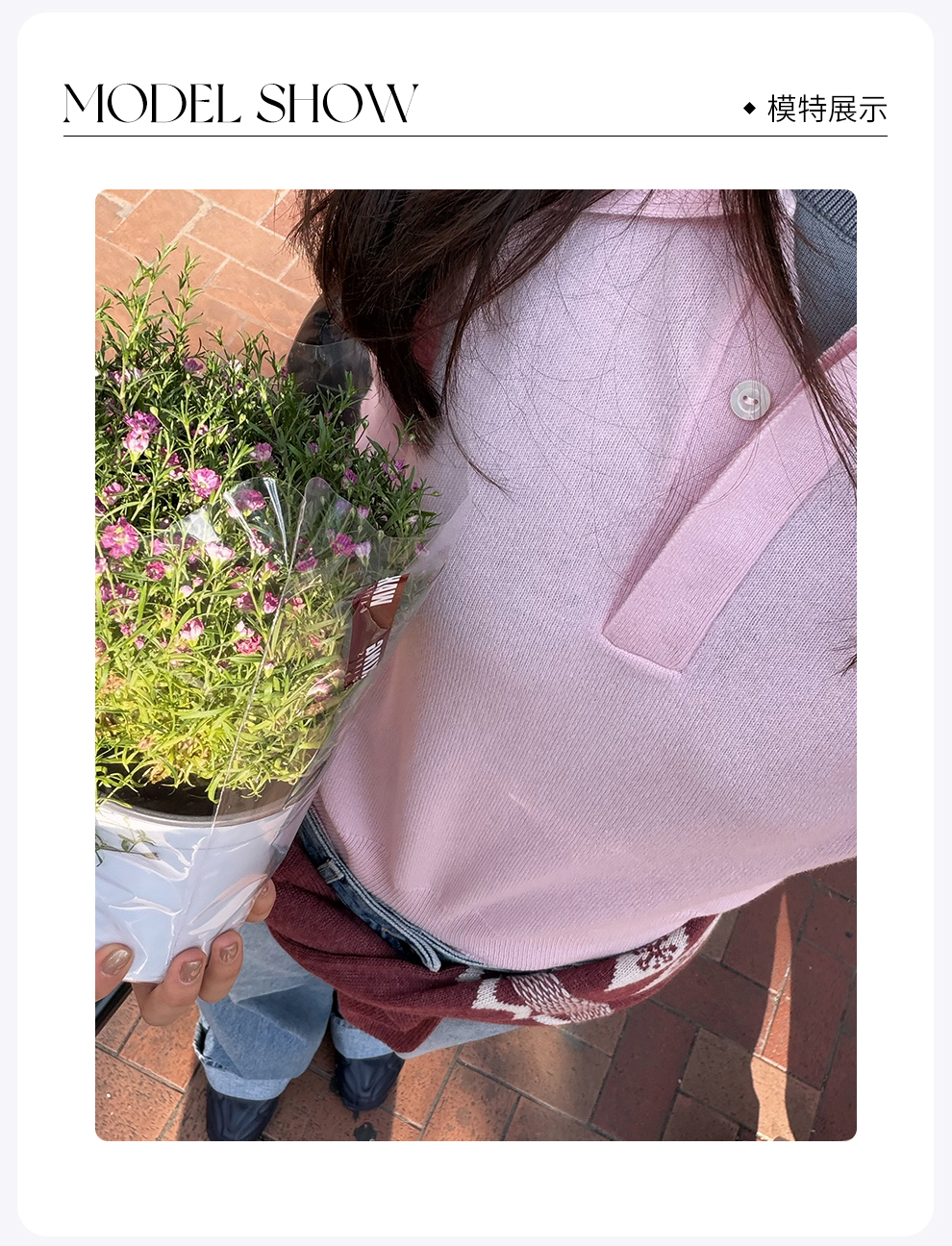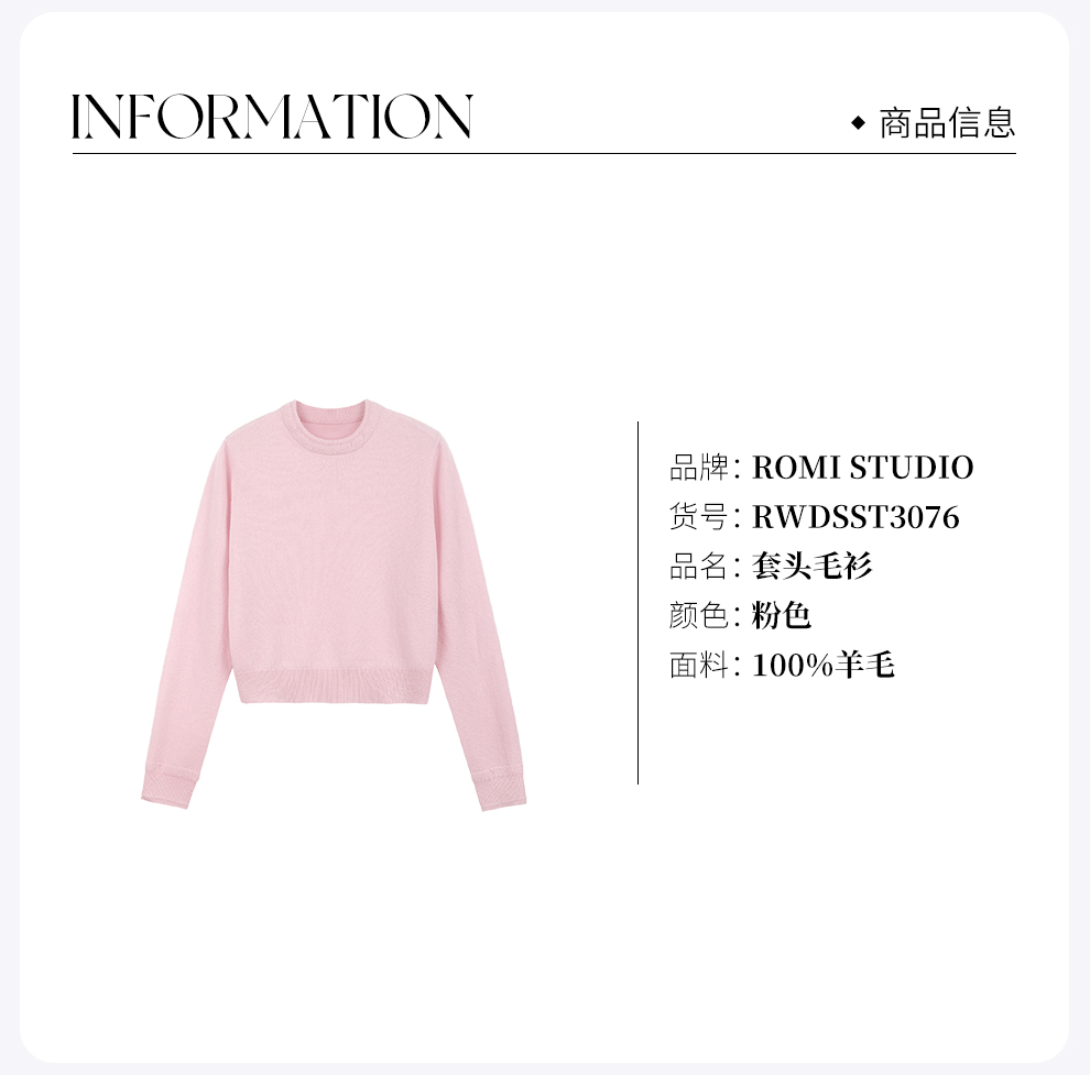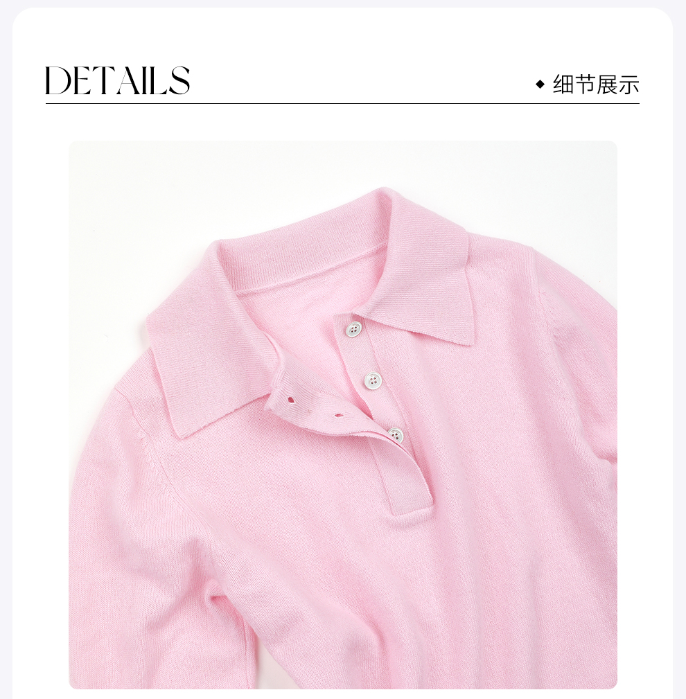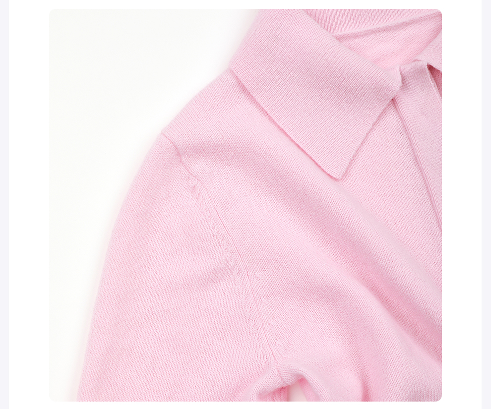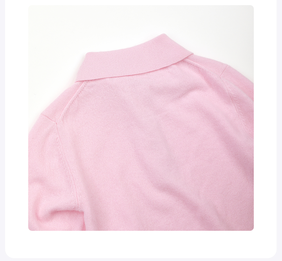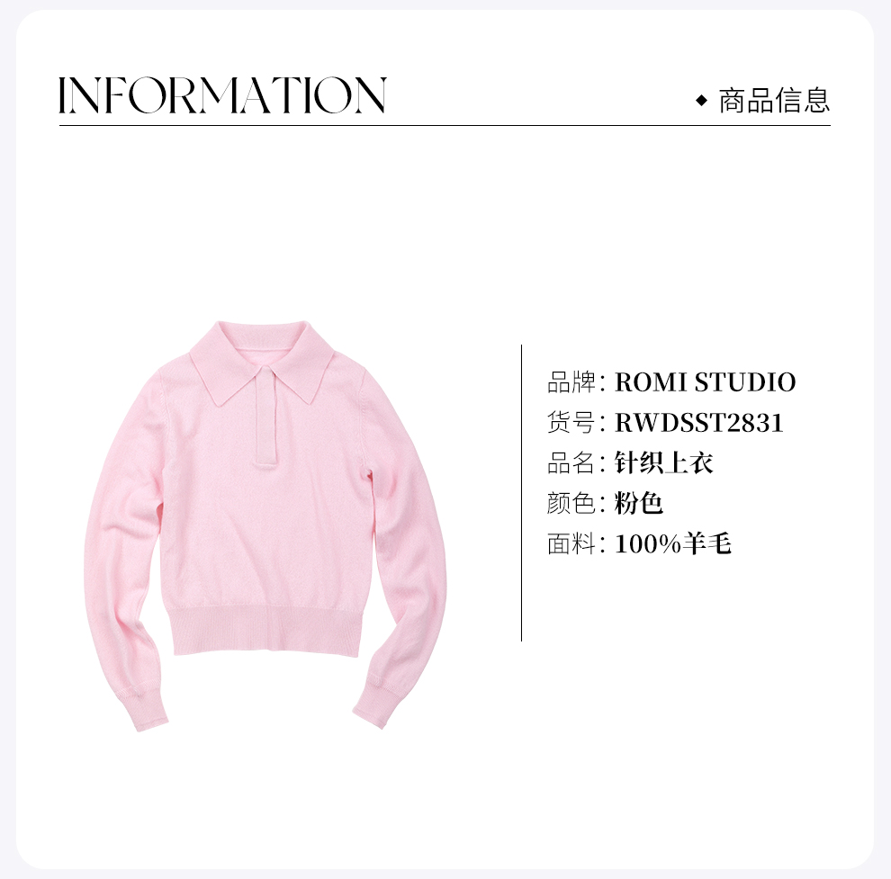 ROMI STUDIO100%澳洲羊毛高弹polo领半开扣粉色毛衫/POLO领上衣RWDSST2831