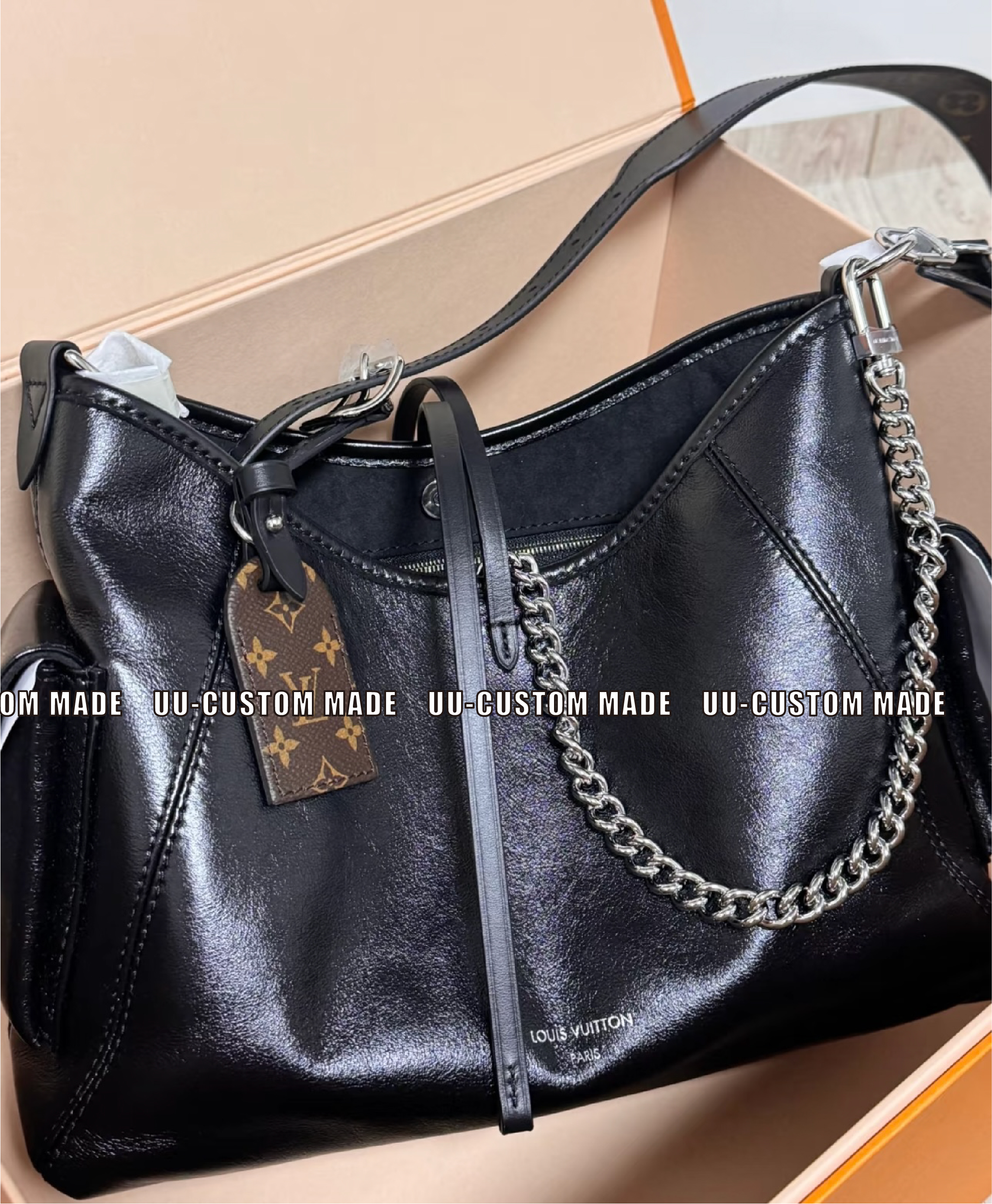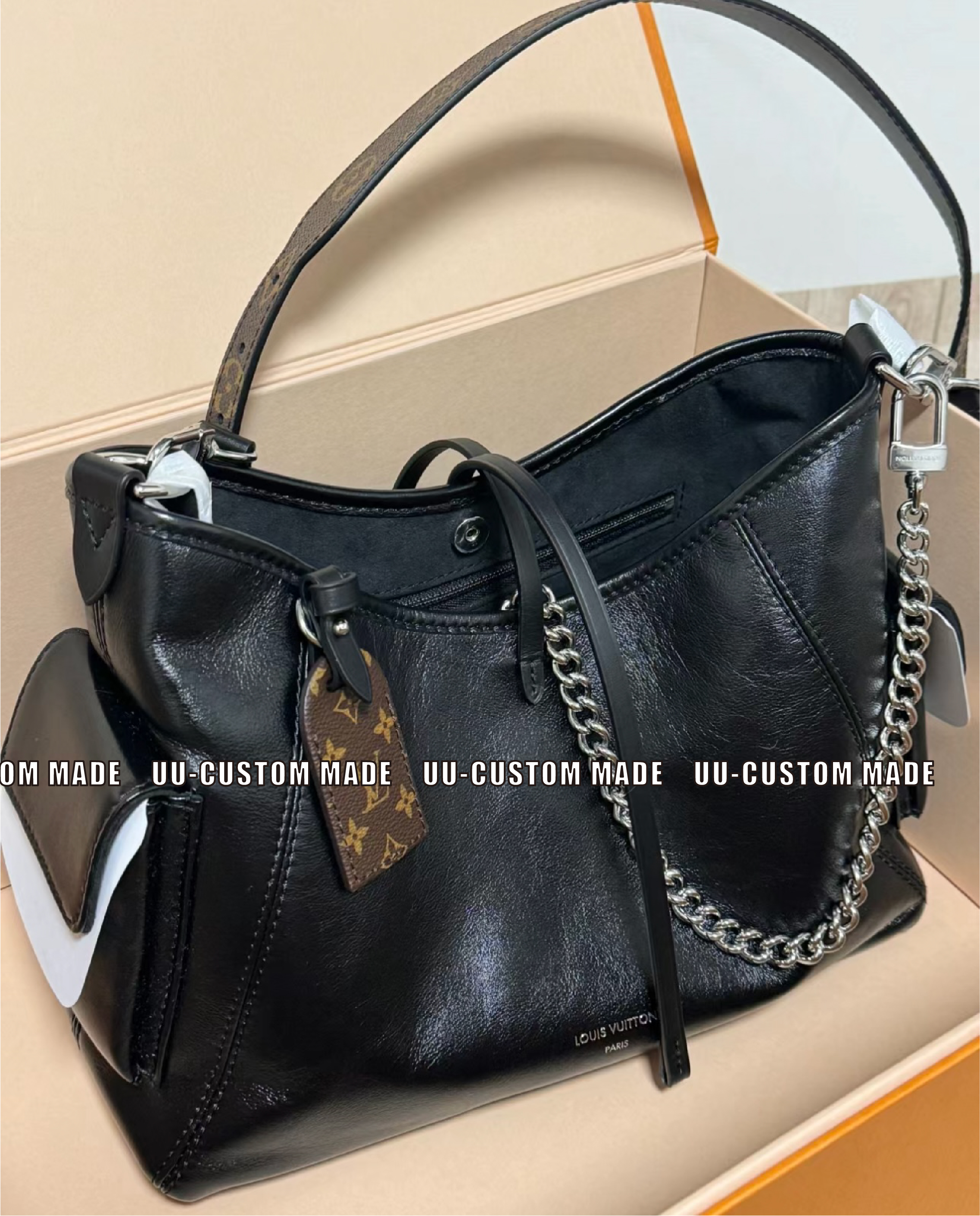 LouIs VUITTON Carryall Dark MM 字母徽标可拆卸可调节肩带黑武士 小羊皮 托特包手提单肩包 黑色(CB)