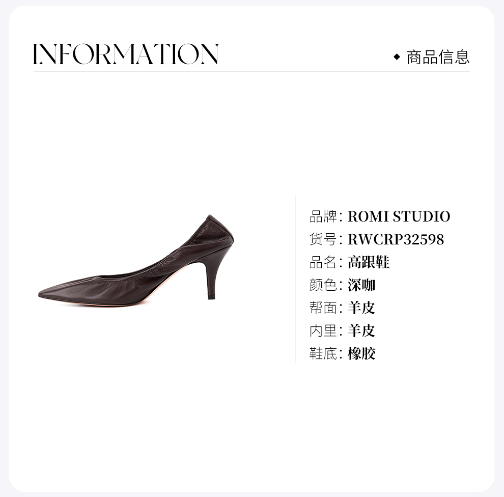 ROMI STUDIO羊皮褶皱工艺意大利大底尖头方高跟鞋RWCRP32598