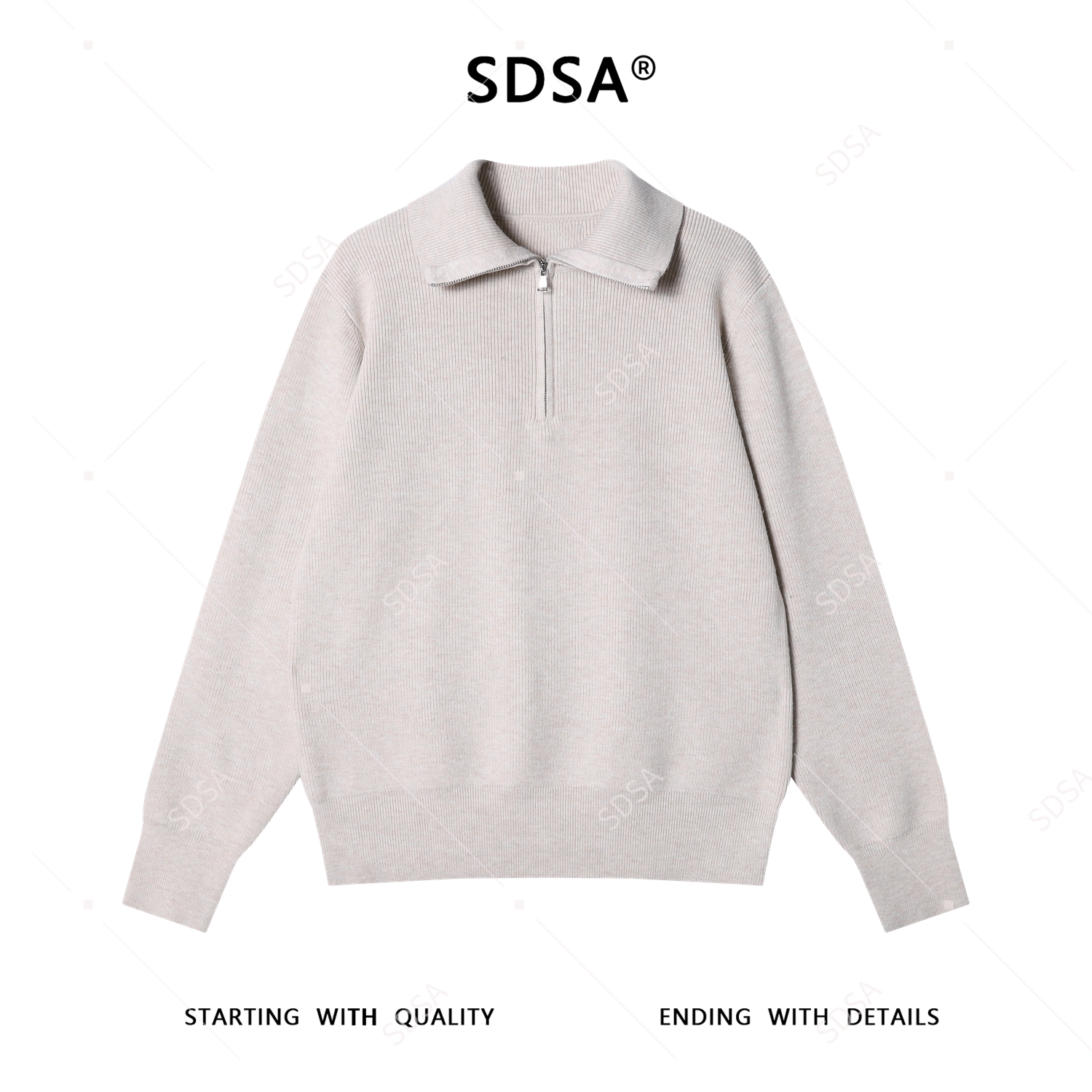259626SDSA秋冬新款痞帅男装潮牌纯色半拉链翻领毛衣简约休闲套头上衣