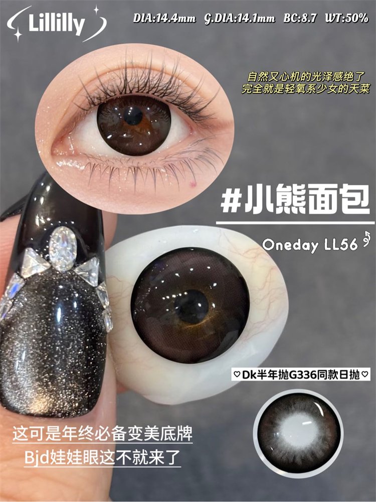 Lillilly LL-56黑 小熊面包 日抛直径14.4mm日常美瞳 黑色 10片/盒