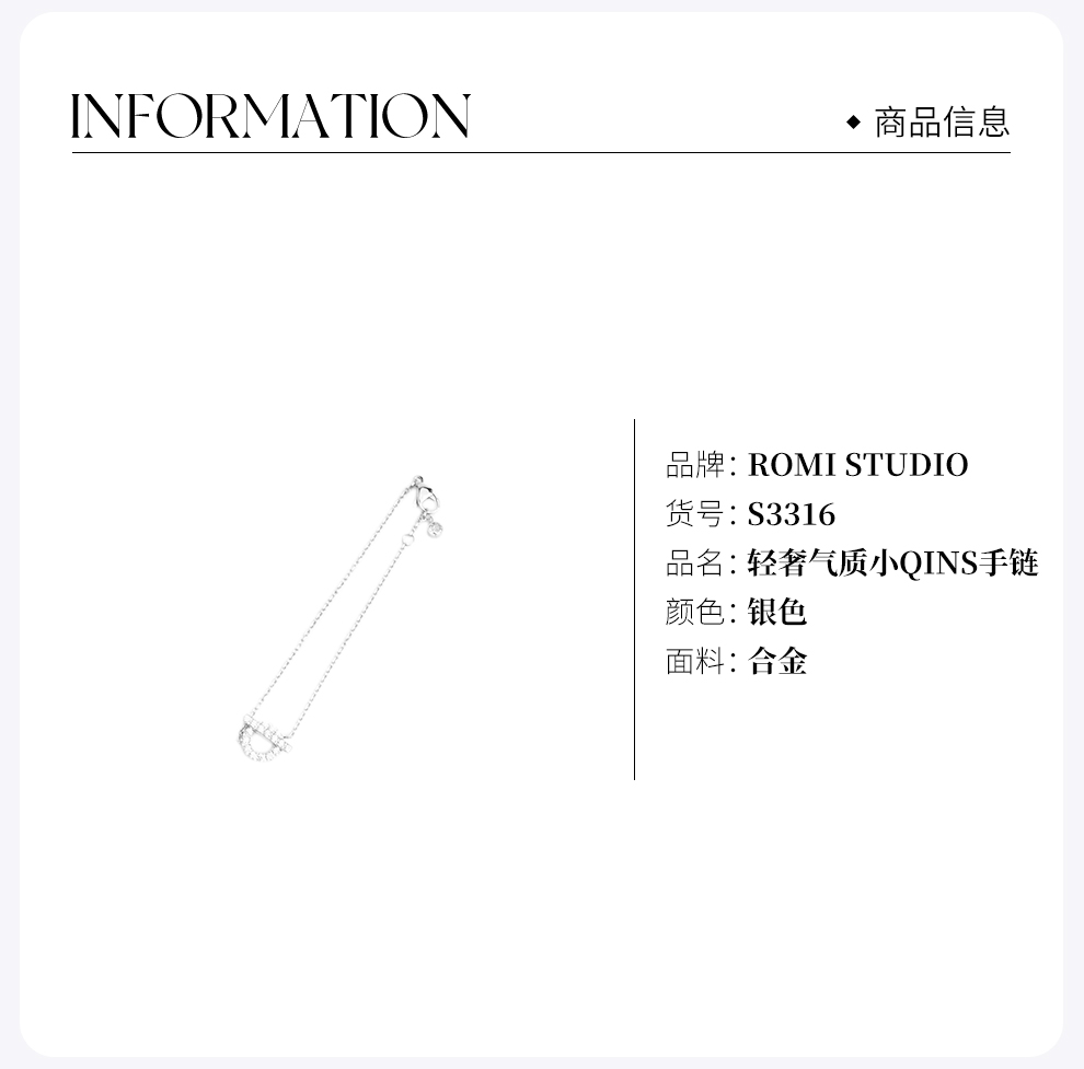 ROMI STUDIO不锈钢手链 “简约优雅”百搭轻奢气质小Qins银色手链通用链子S3316