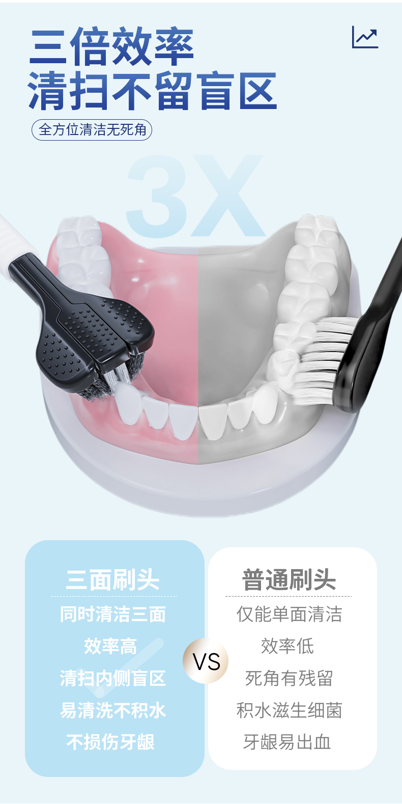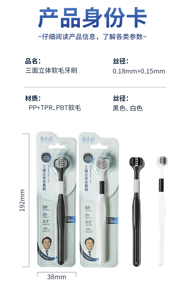 俊小白3D立体牙刷成人护龈男女通用宽头口腔清洁家庭装新品 商品图3