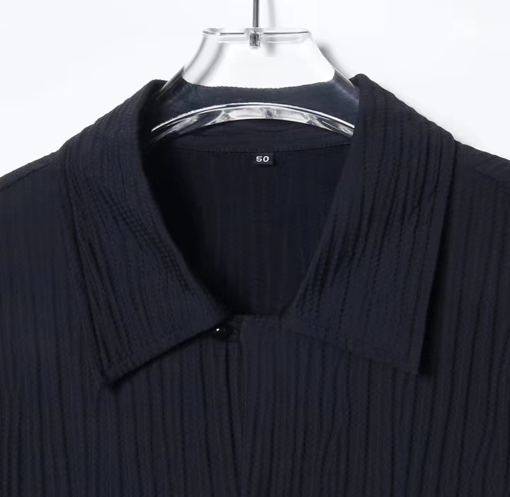 T0150夏季新款纯色条纹高弹polo衫百搭男士休闲上衣潮流宽松短袖