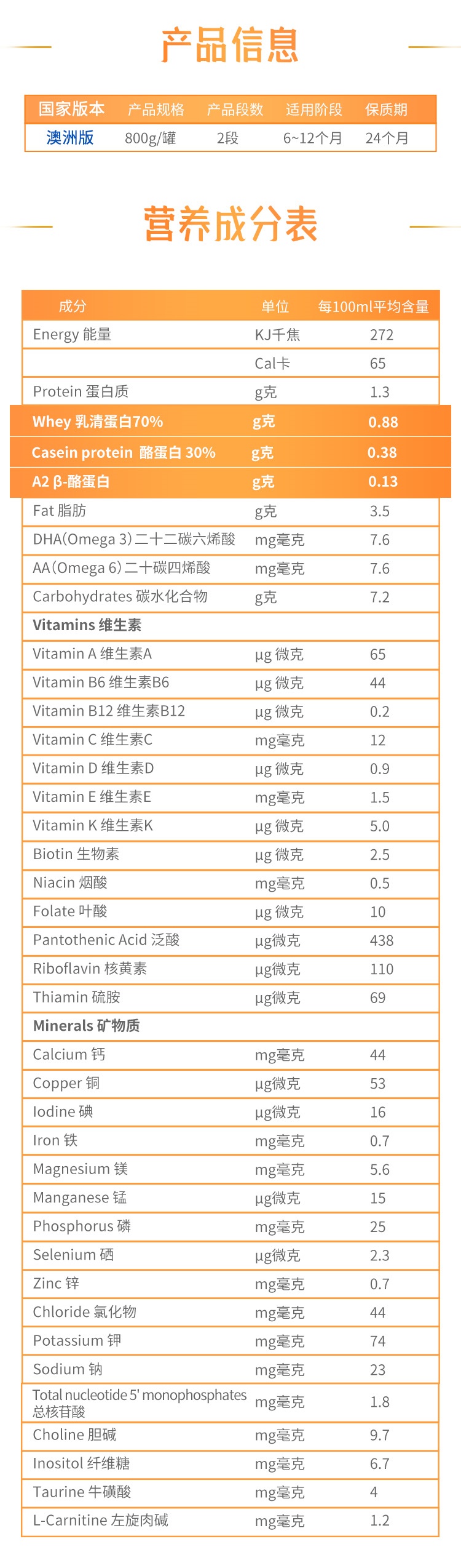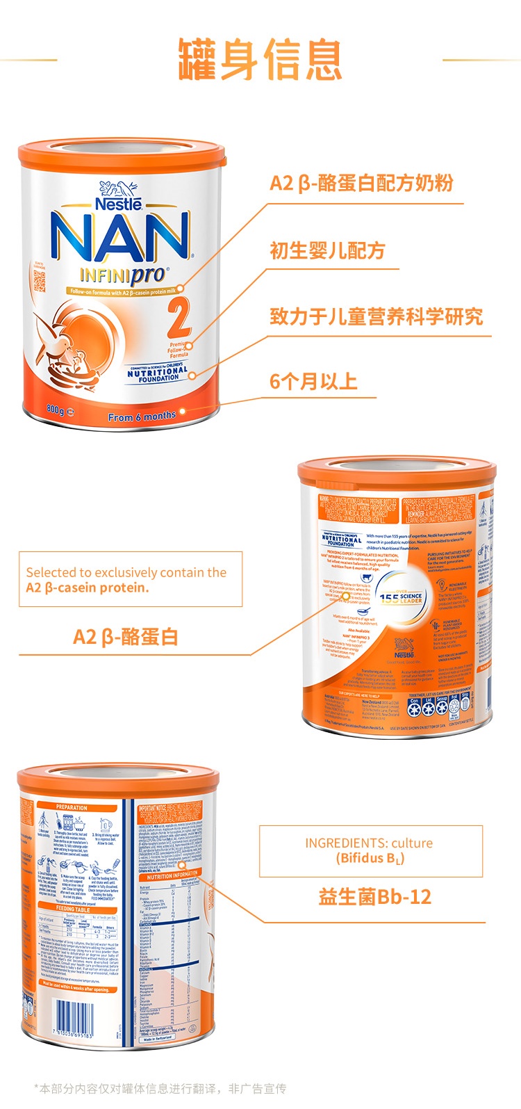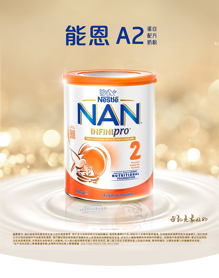 【品牌直供】澳版NAN雀巢能恩全护A2婴幼儿配方奶粉 2段 6-12个月 800g