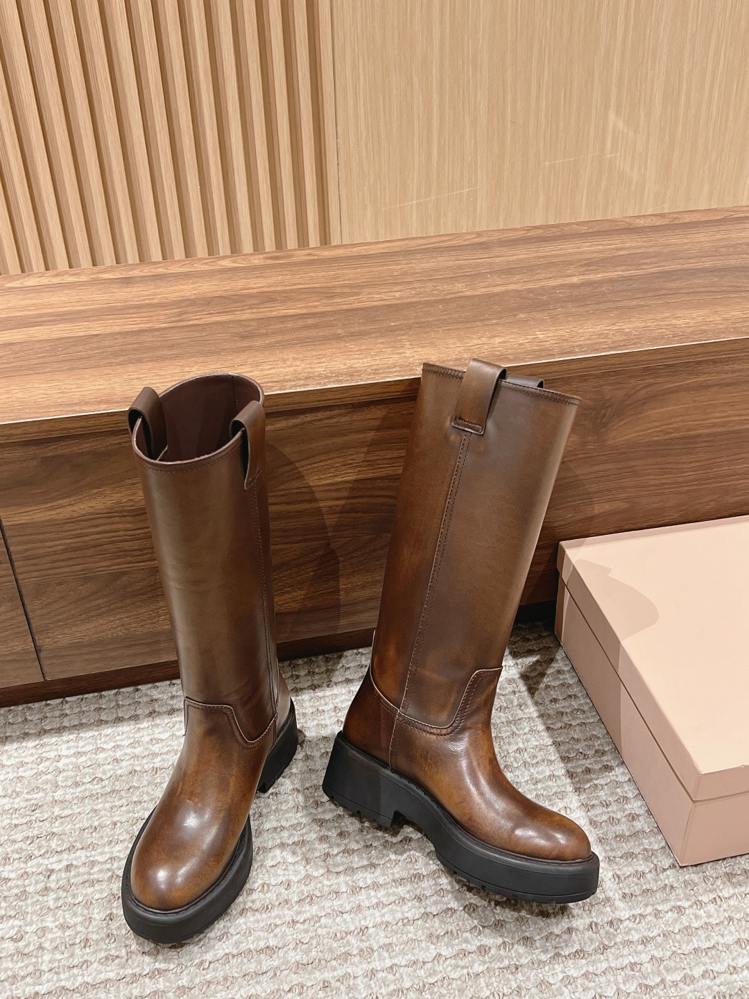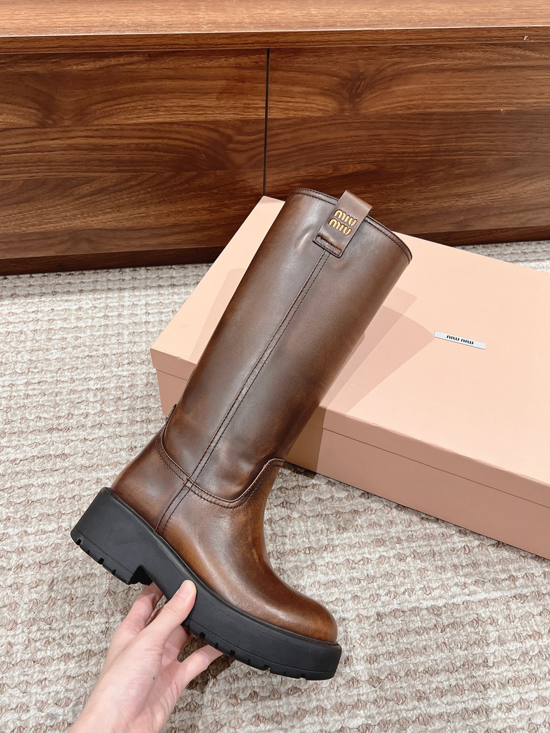 *# 缪家 厚底圆头靴长靴