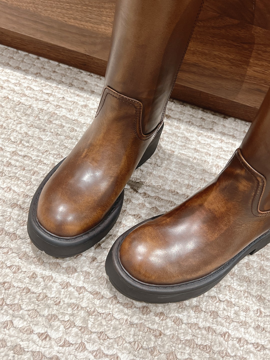 怎么穿都好看 秋冬新款时髦精最爱 看起来不怎么舒服 上脚超级舒服 超级重工 每一双都是独一无二不对寸的擦色效果 特定擦色牛皮材质 牛皮内里