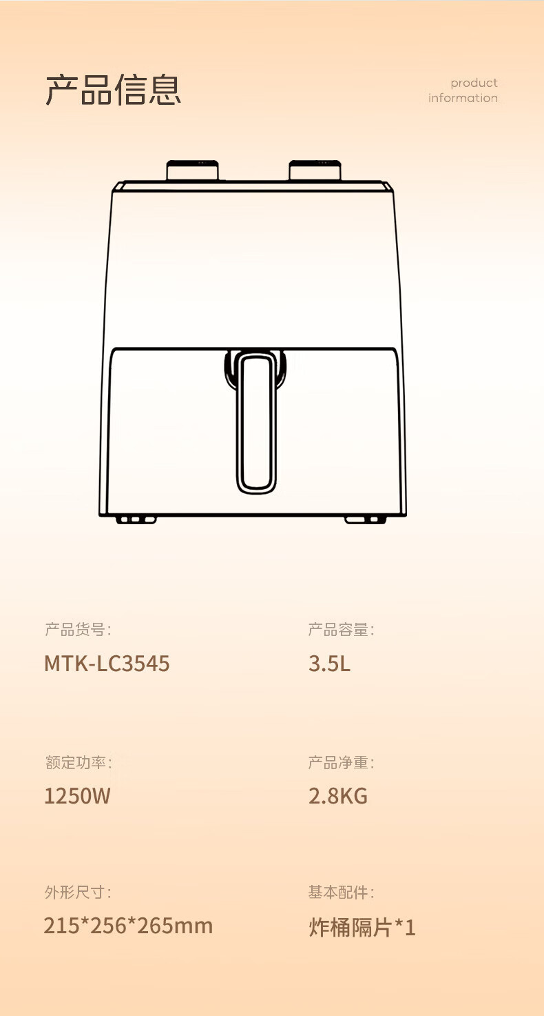 美菱 空气炸锅大容量 精准控温调时 3.5L