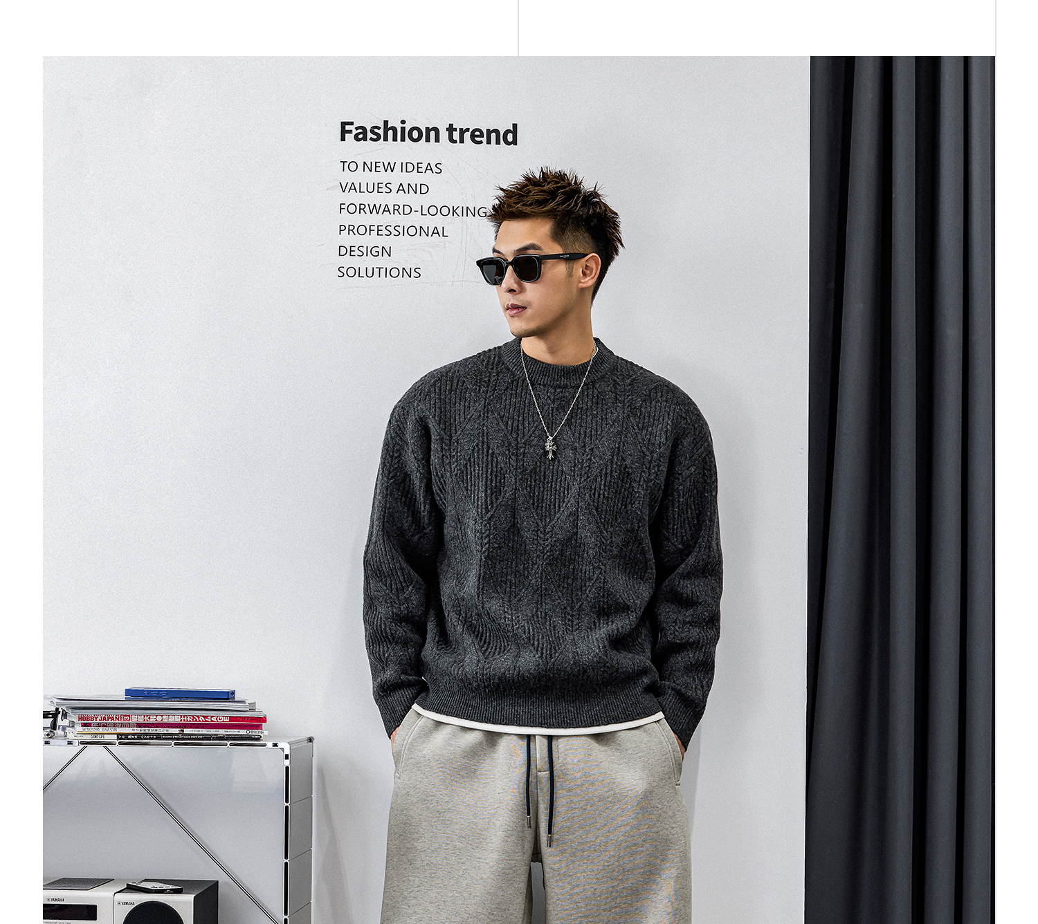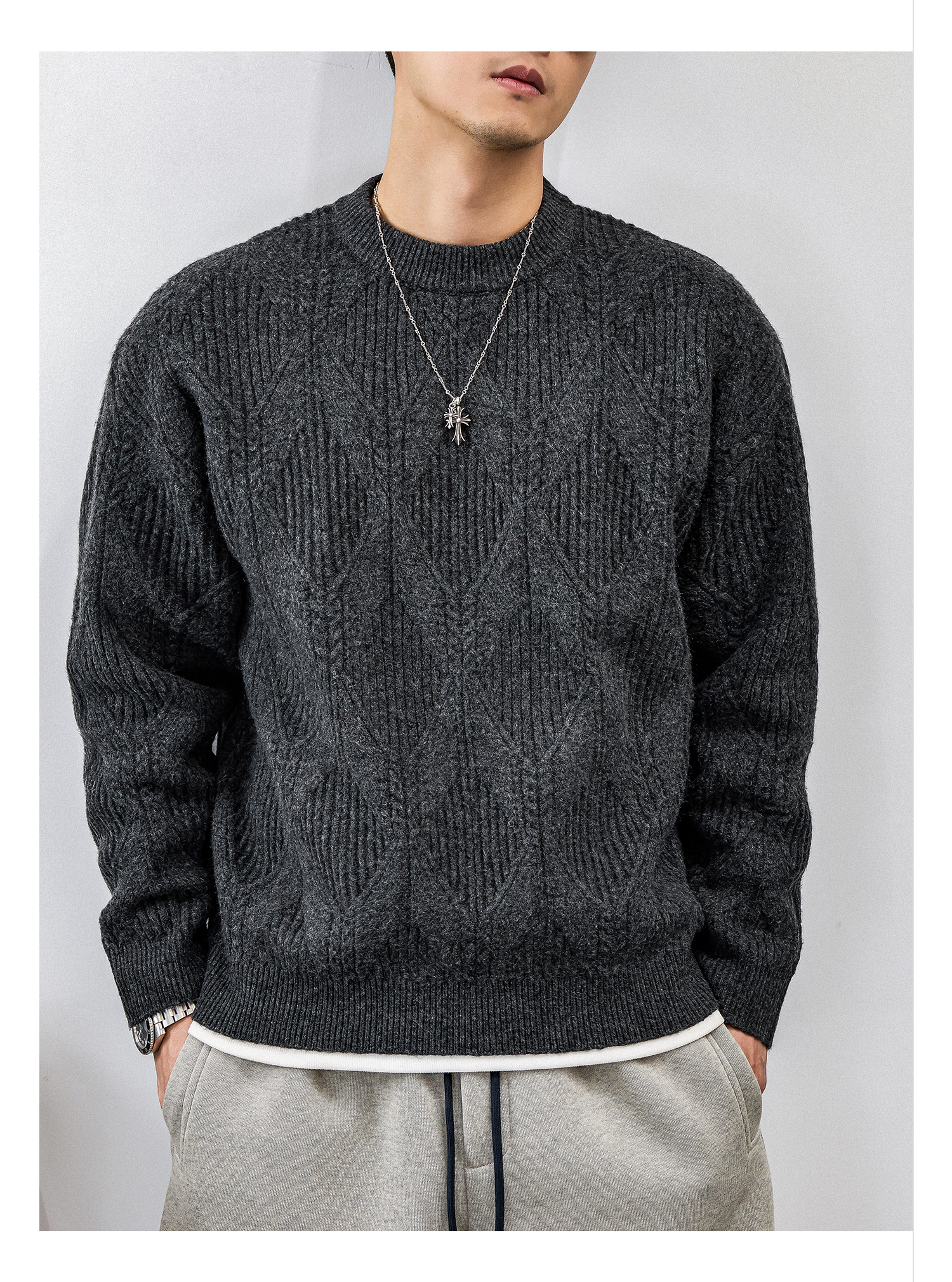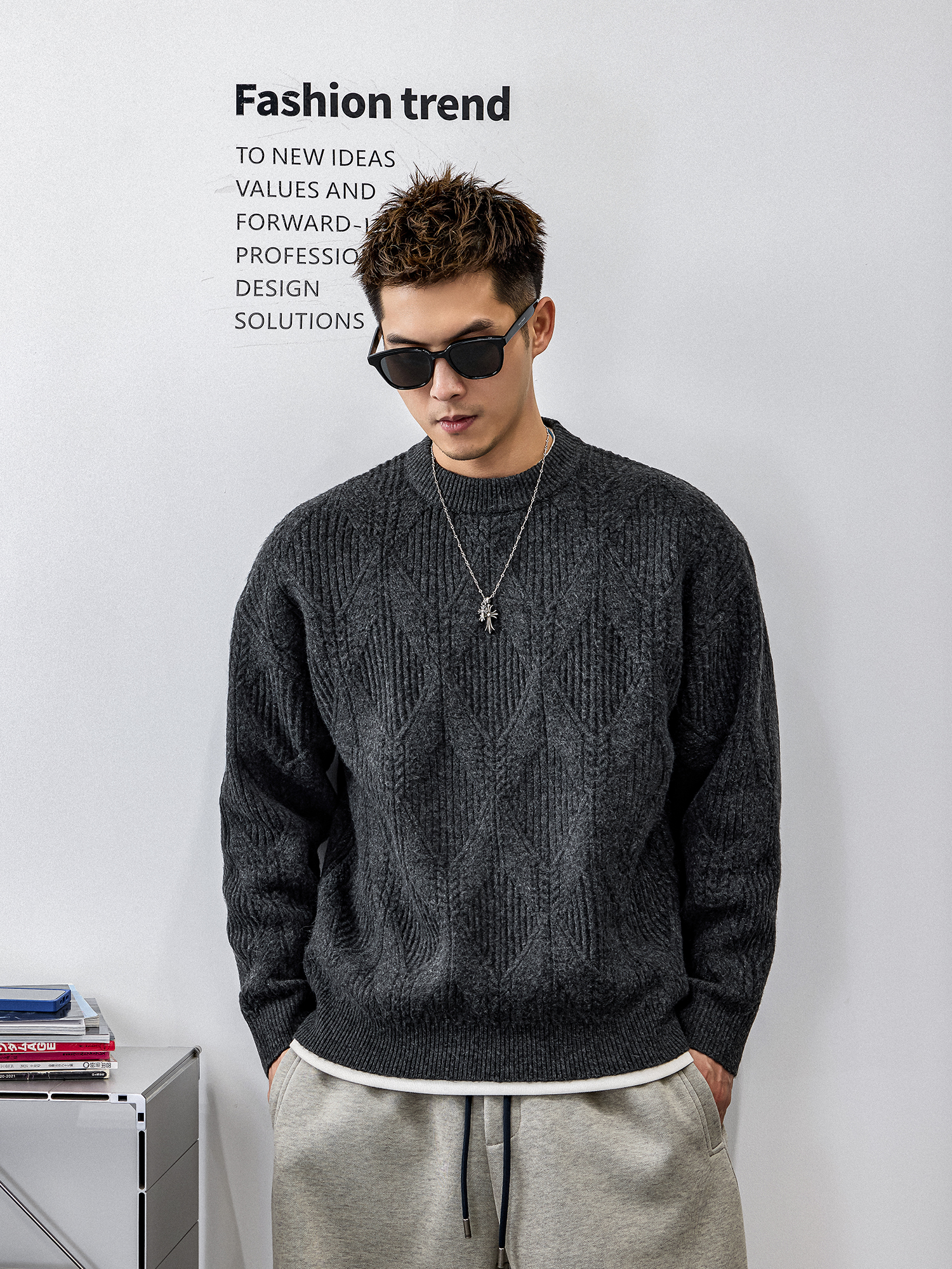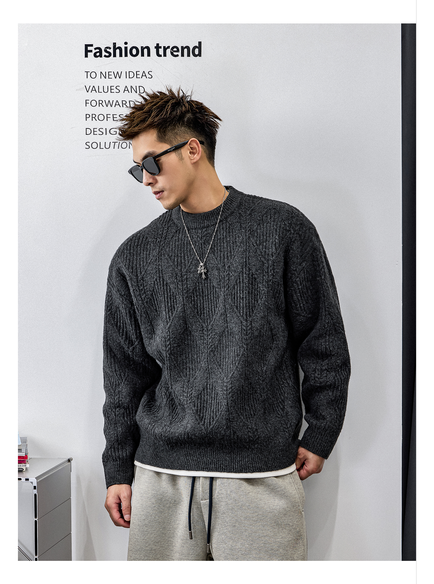 徐太浪【麻花纹 菱形扭花】灰色毛衣男秋冬大码男装针织打底上衣