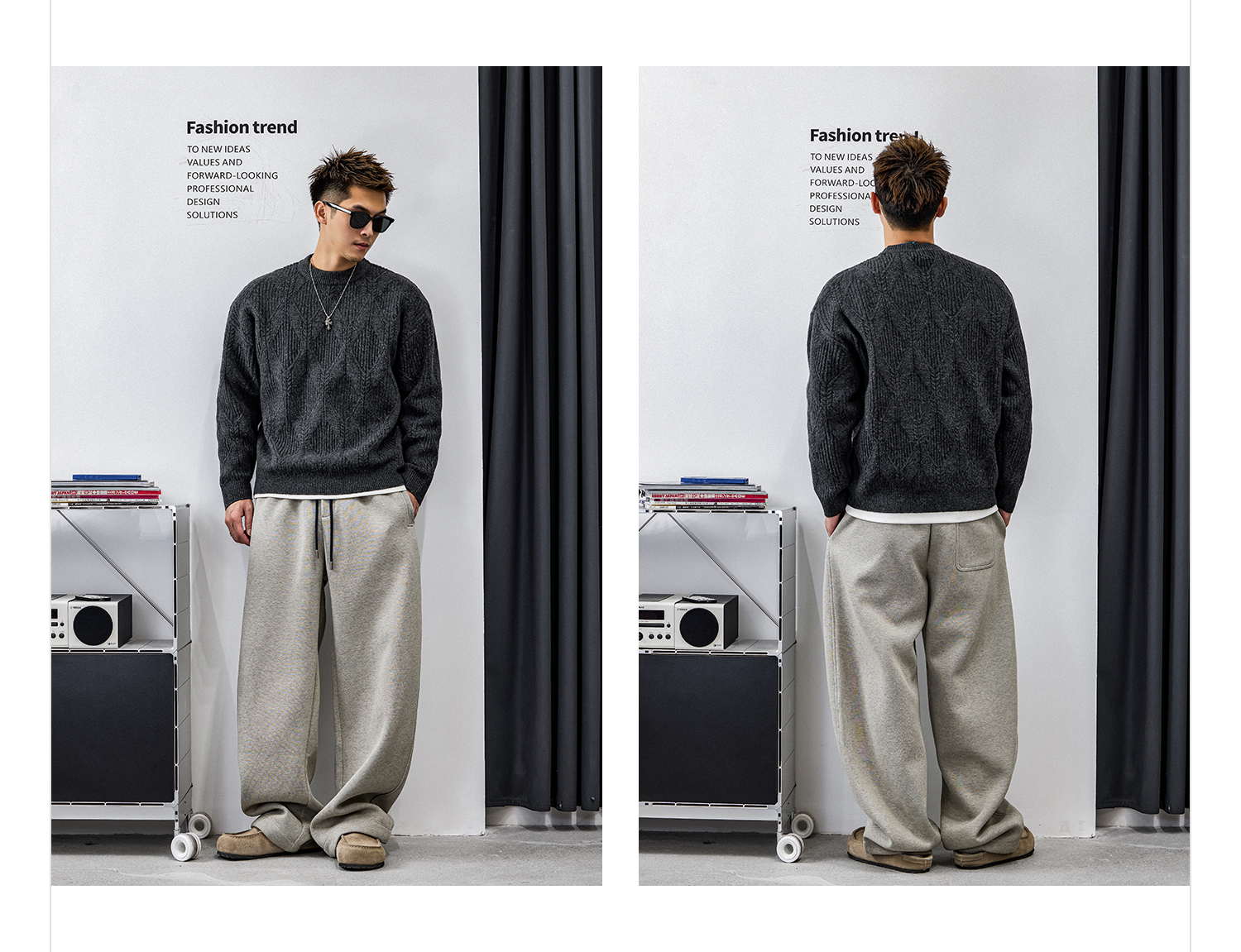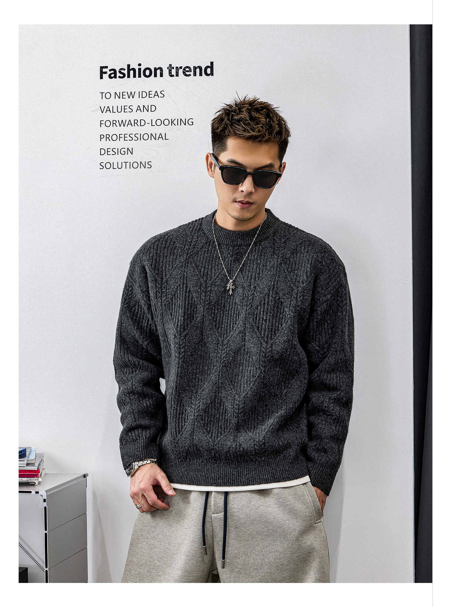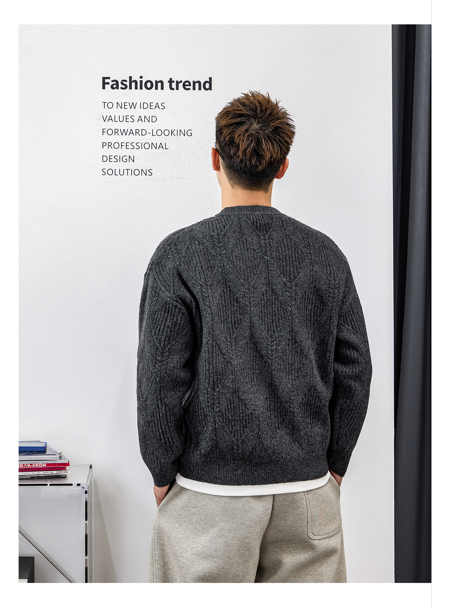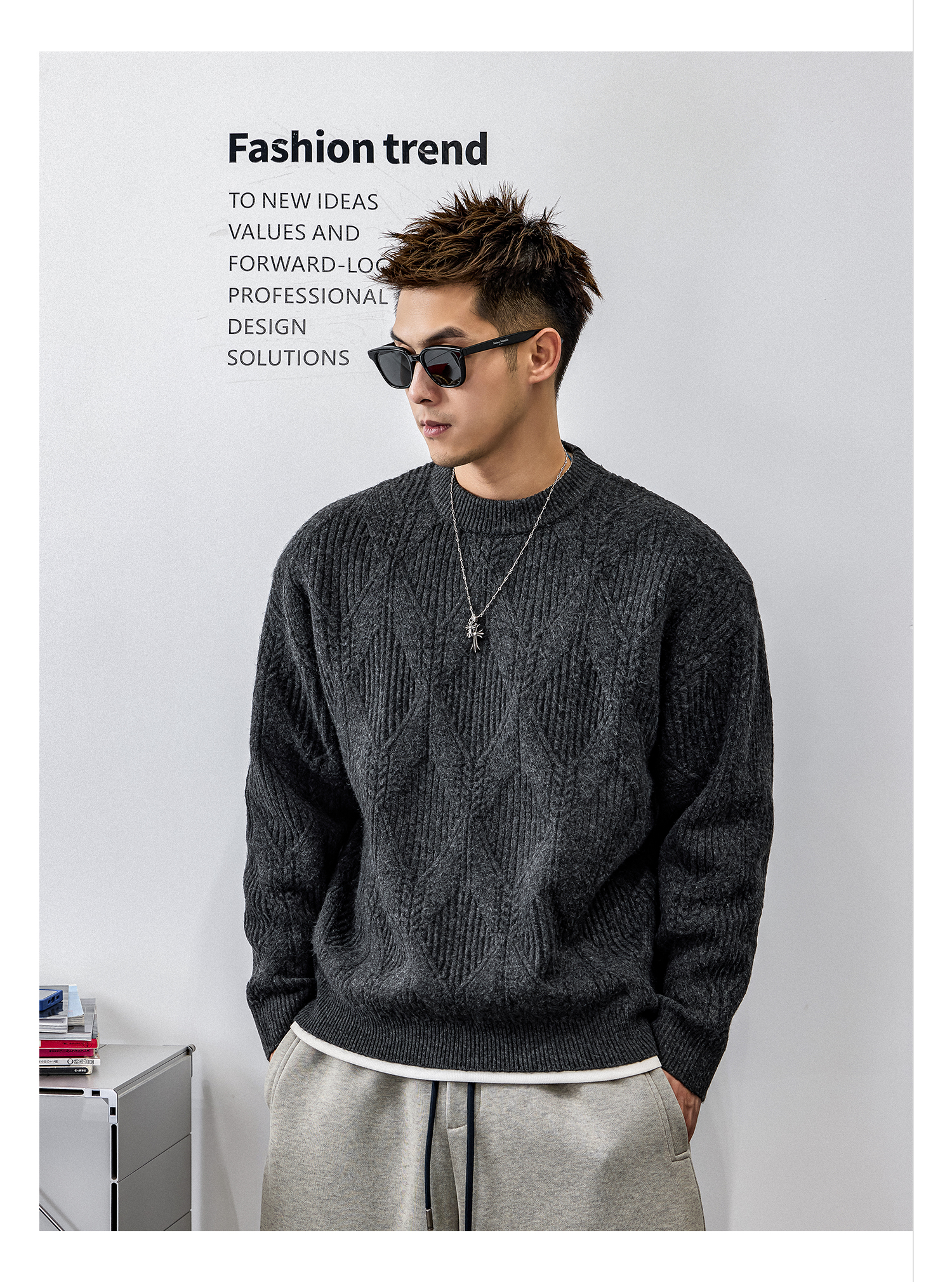徐太浪【麻花纹 菱形扭花】灰色毛衣男秋冬大码男装针织打底上衣