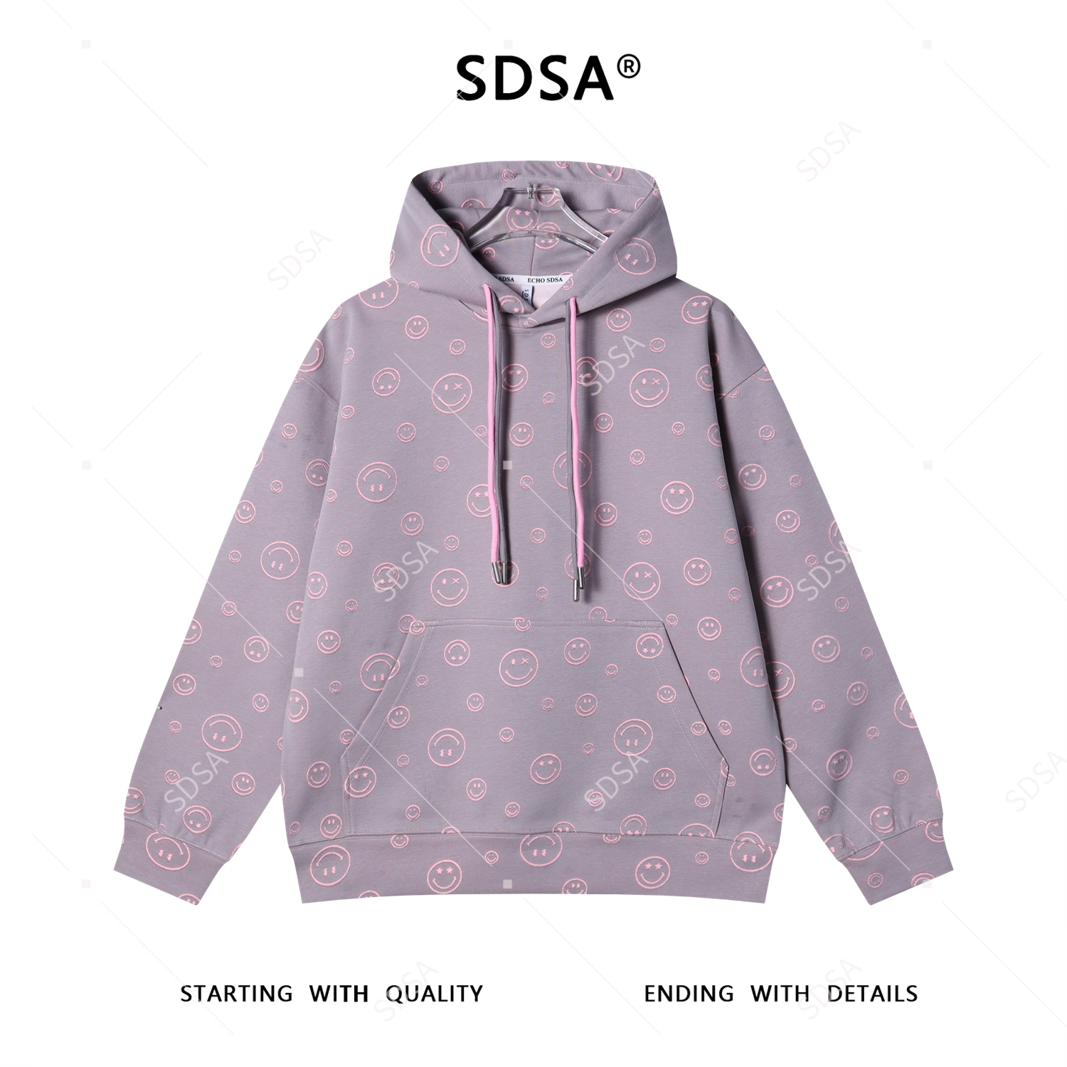 SDSA秋冬新款痞帅男装撞色满印割破笑脸抽绳连帽卫衣百搭时尚上衣