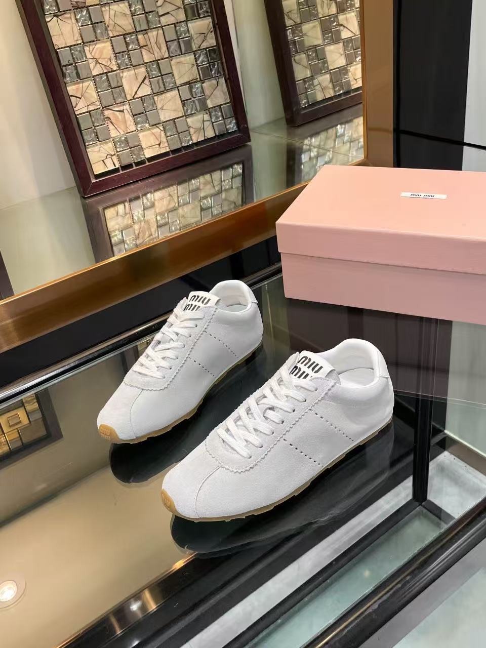 缪缪 Plume绒面牛皮革运动鞋(DBG)