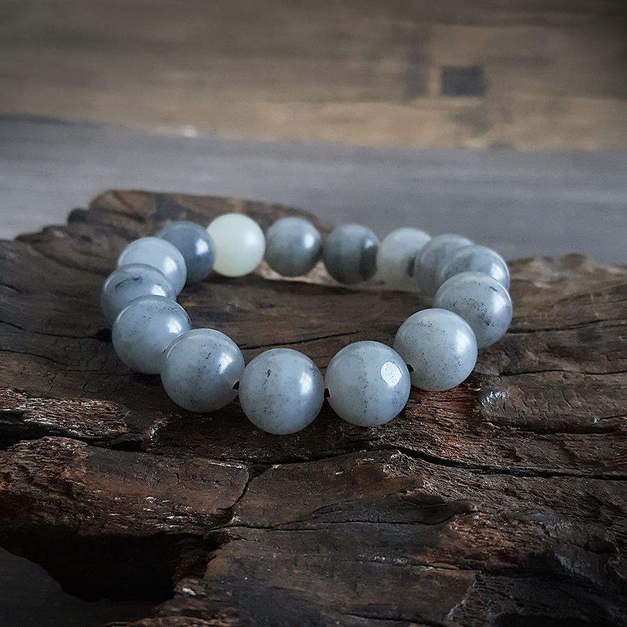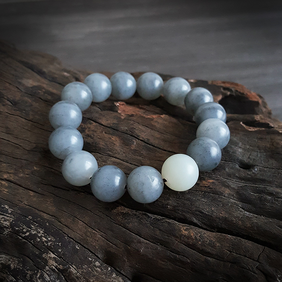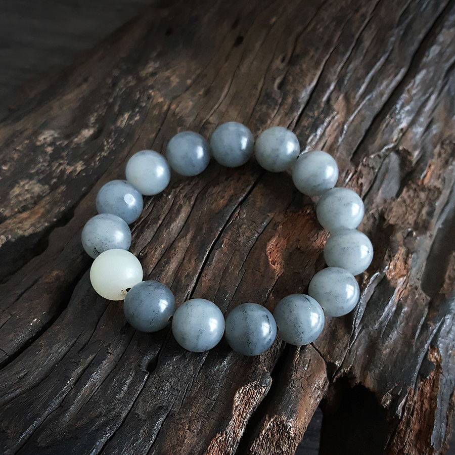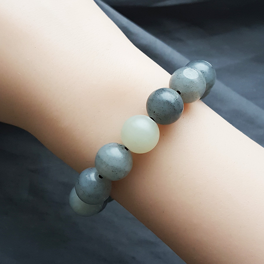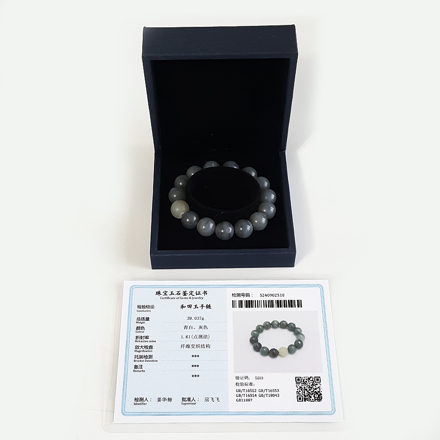 【天然正品】天然无杂裂约11.8MM新疆青花料圆珠和田玉手串16CM(弹力绳)中性现售价:980!特价190824NJ07